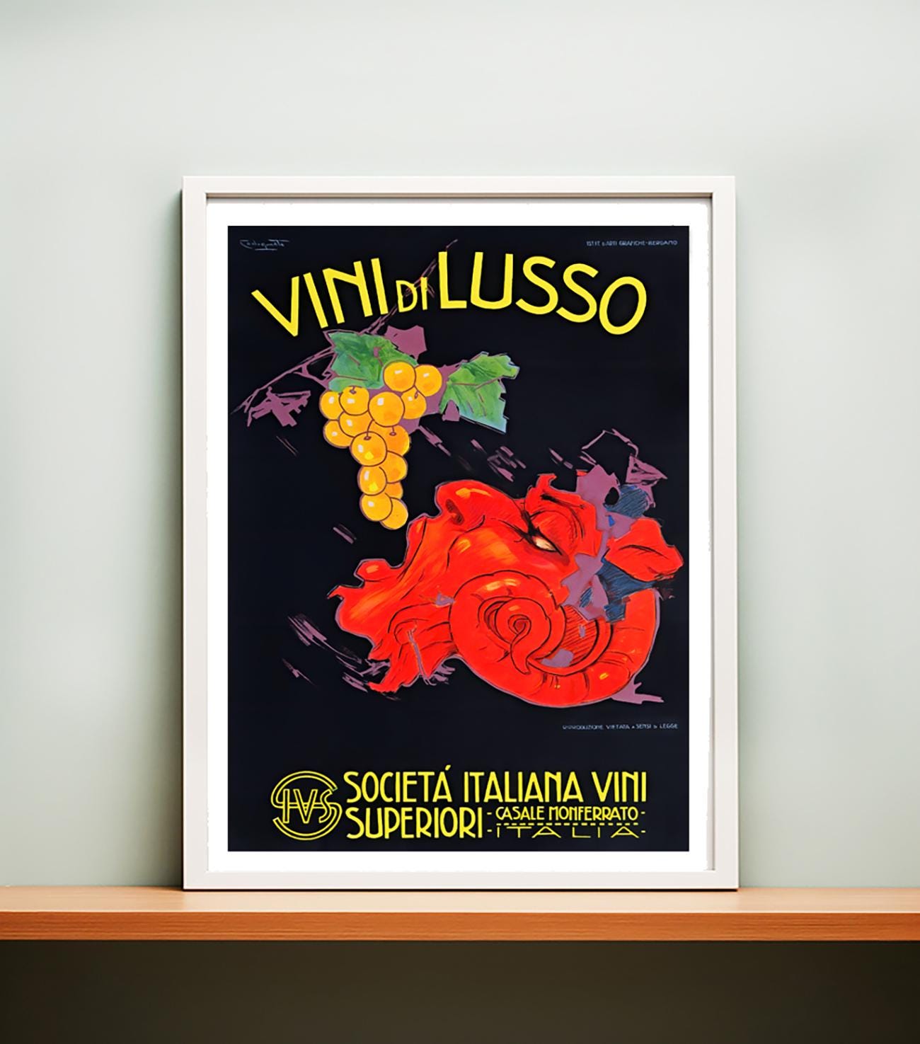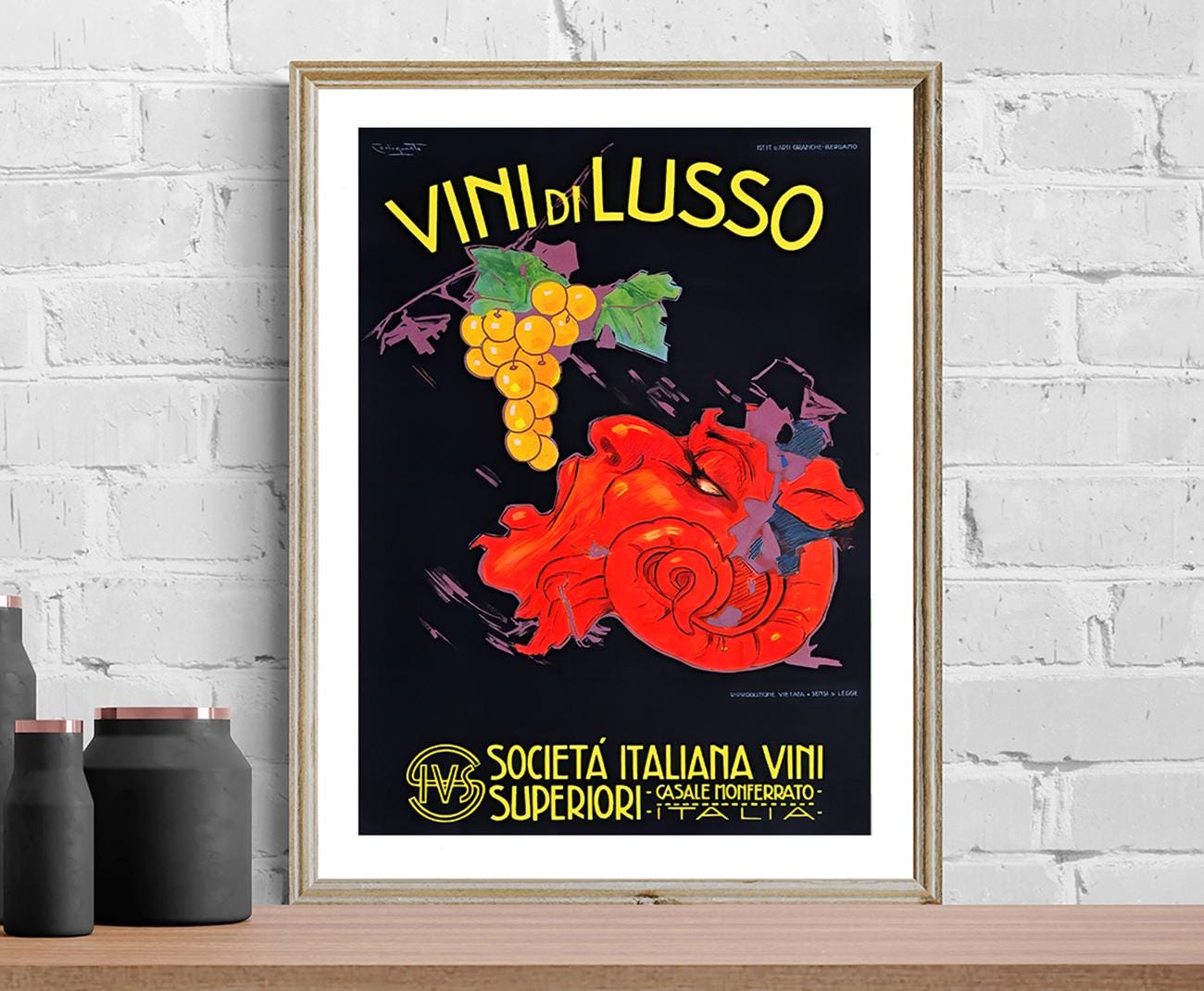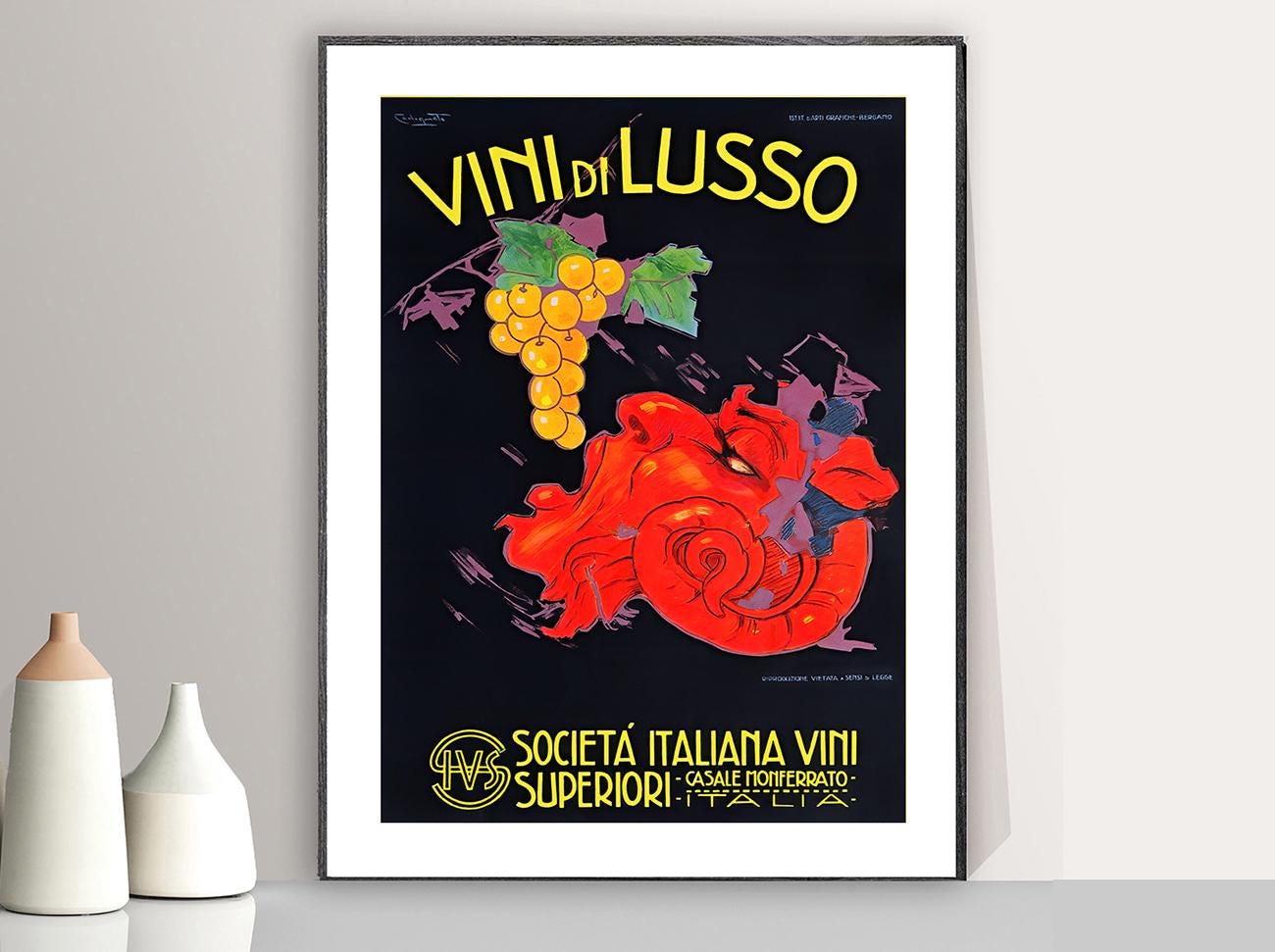 Vintage Vini di Lusso Advertisement Art Print - Reproduction of a Vintage Artwork, Decorative Purposes Wall Decor - Poster Paper or Canvas Print / Wall Decor
