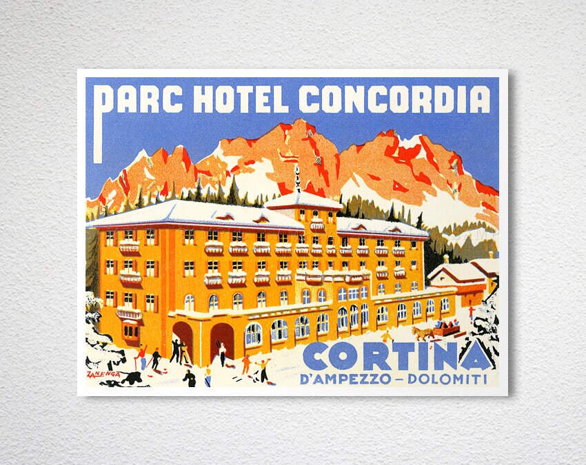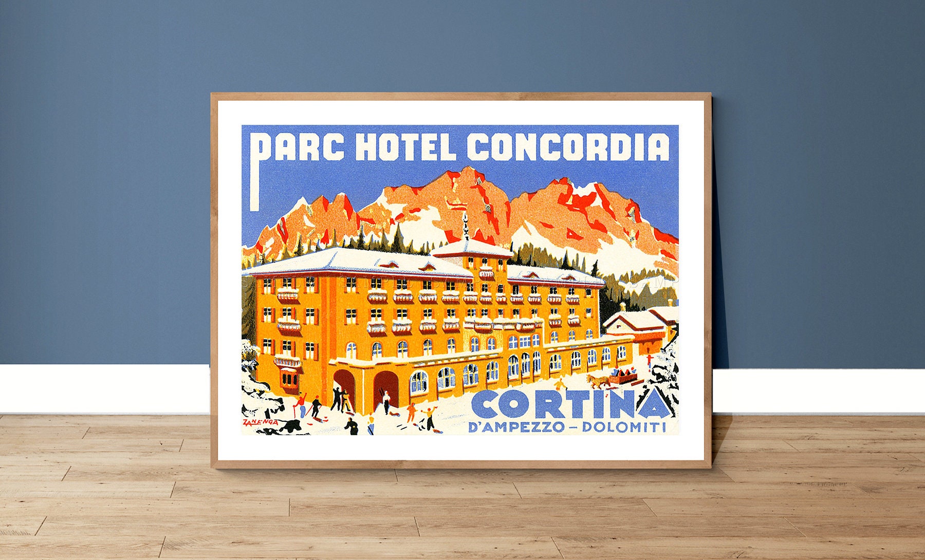 Parc Hotel Concordia, Cortina d'Ampezzo Vintage Travel Poster - Poster Paper or Canvas Print / Gift Idea / Wall Decor