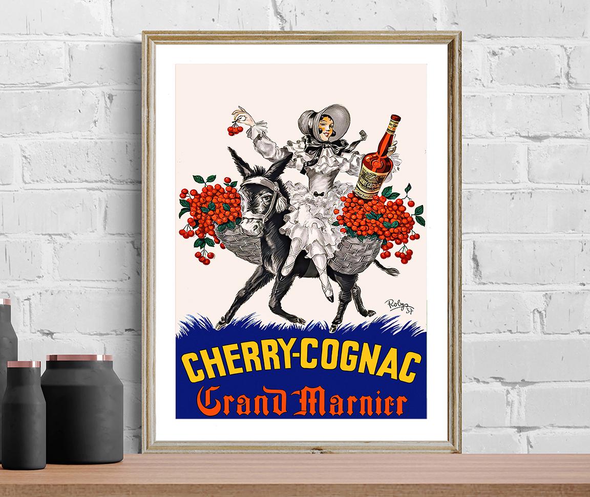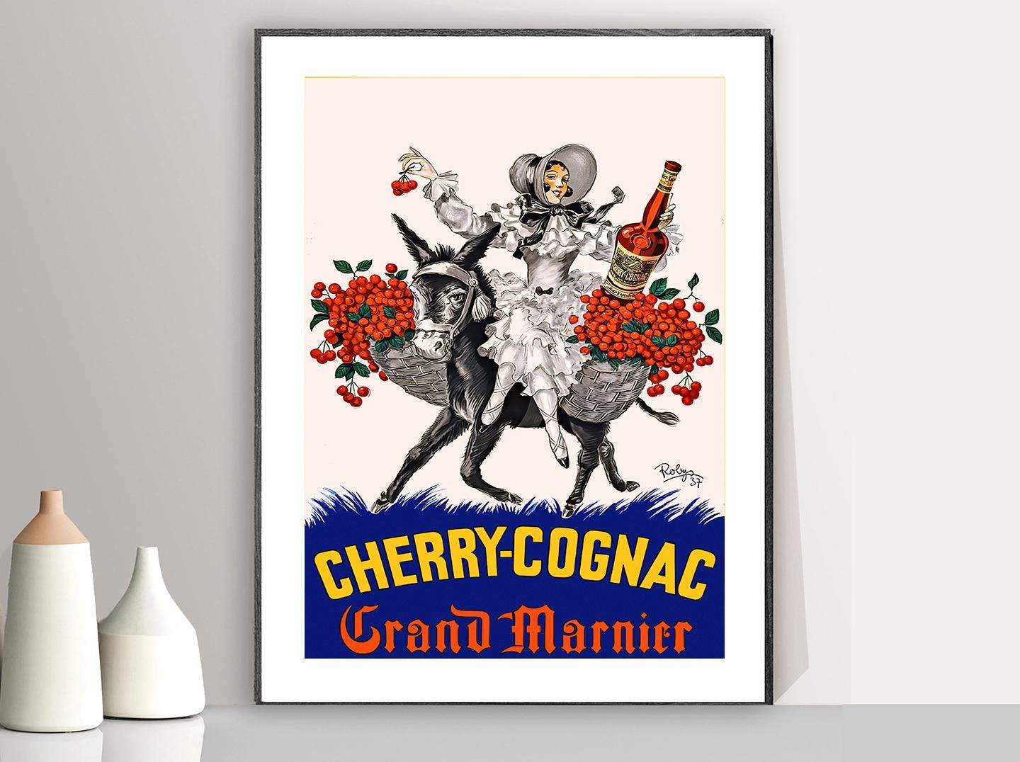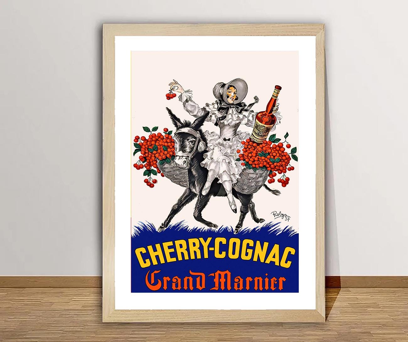 Vintage French Cherry Cognac Advertisement Art Print - Reproduction of a Vintage Artwork, Decorative Purposes Wall Decor - Poster Paper or Canvas Print / Gift Idea / Wall Decor