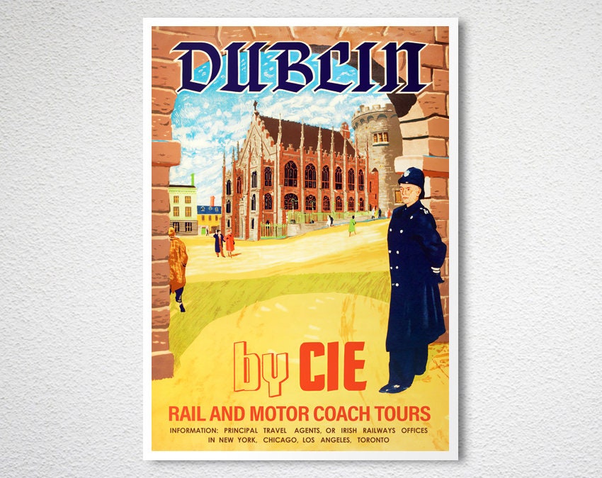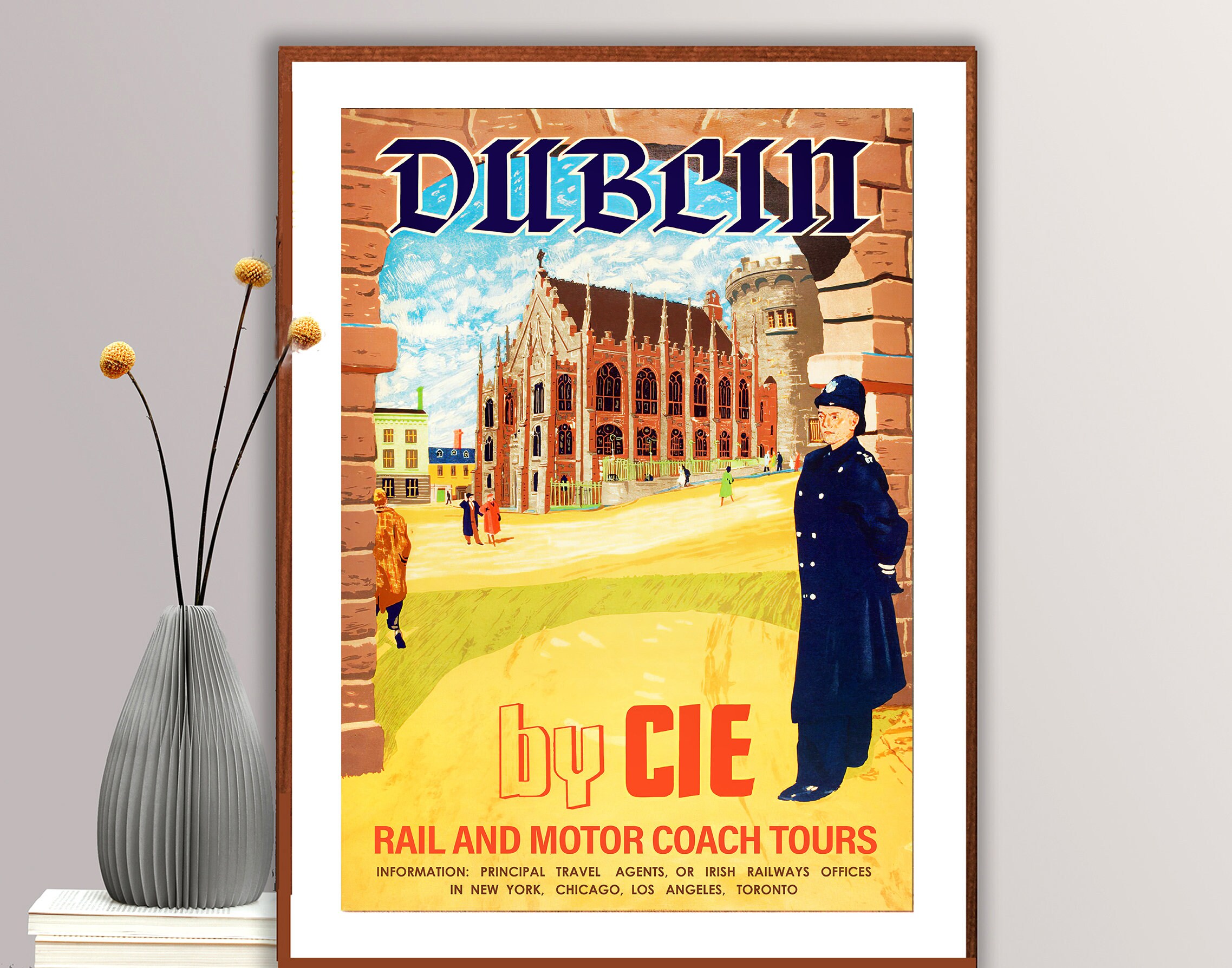 Dublin by CIE Rail and Motor Coach Tours, Ireland Vintage Travel Poster - Poster Paper or Canvas Print / Wall Decor