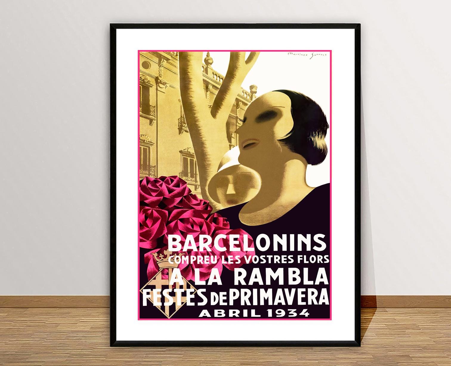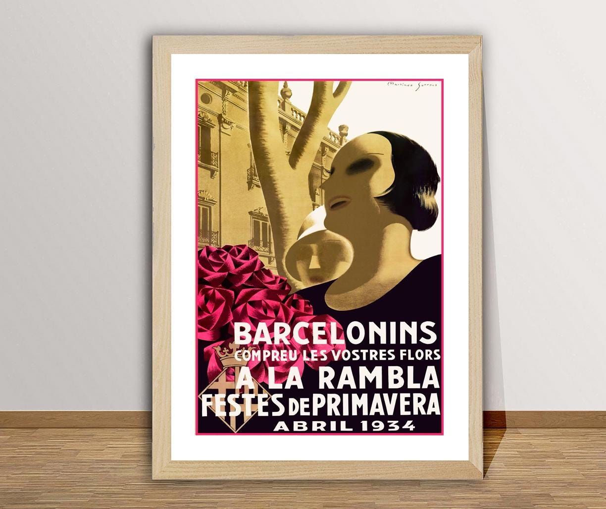 Barcelonins a La Rambla Fiestas de Primavera, Spain Vintage Travel Poster - Poster Paper or Canvas Print / Gift Idea