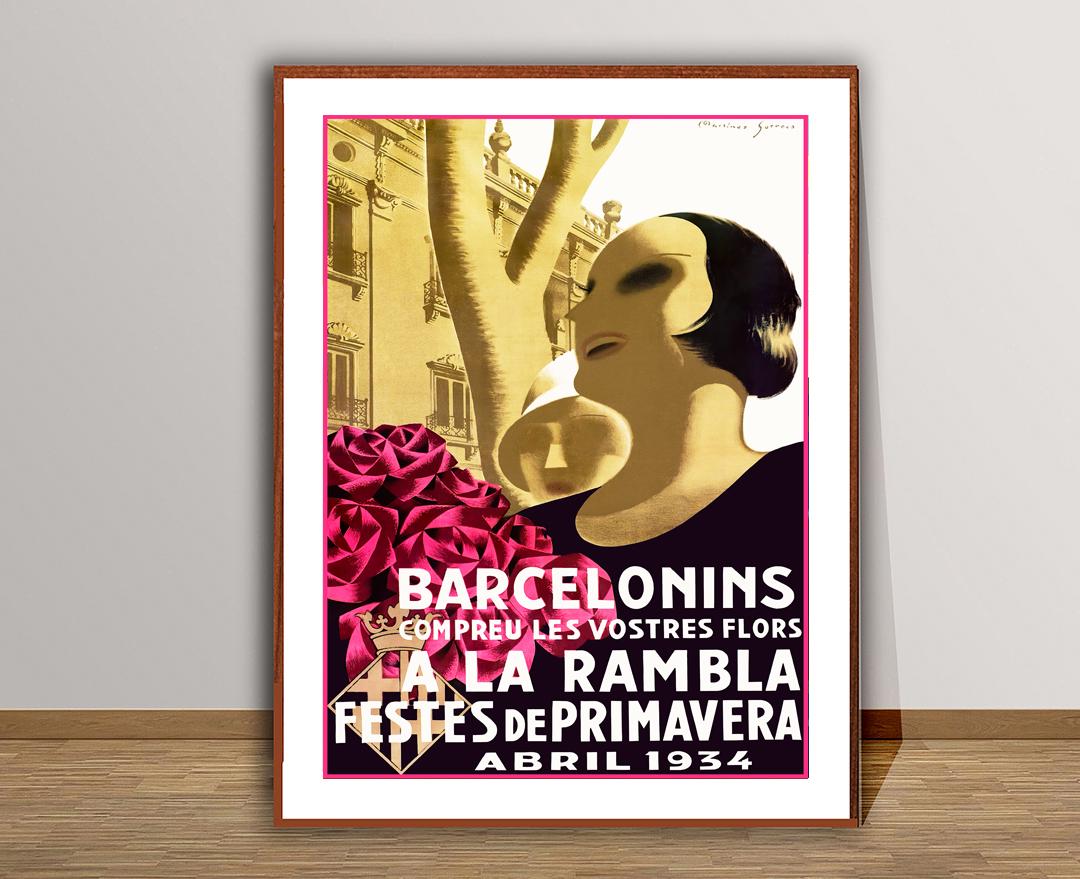 Barcelona Vintage Travel Poster: La Rambla Spring Festival, Spain