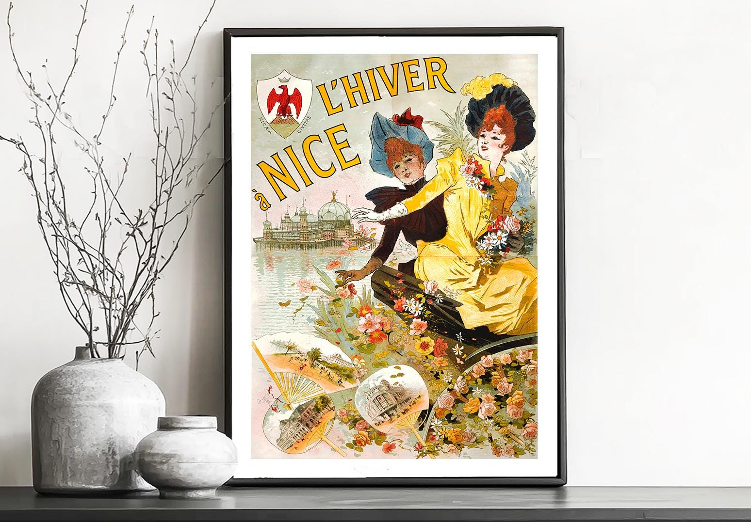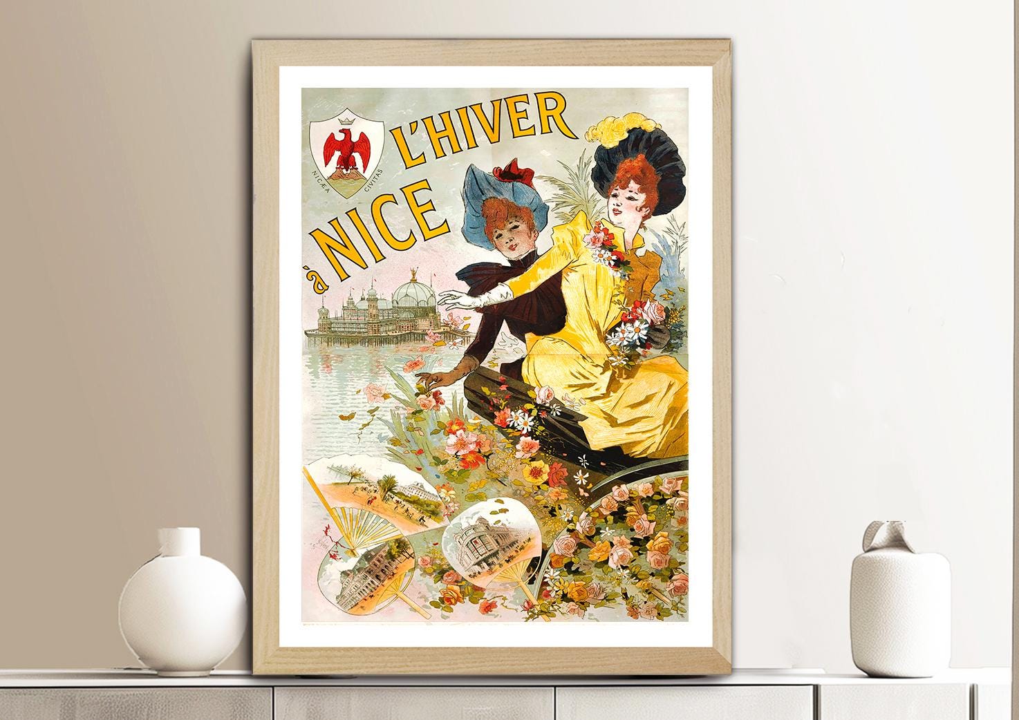 L'Hiver a Nice Vintage Travel Poster by Jules Cheret - Poster Paper or Canvas Print / Gift Idea