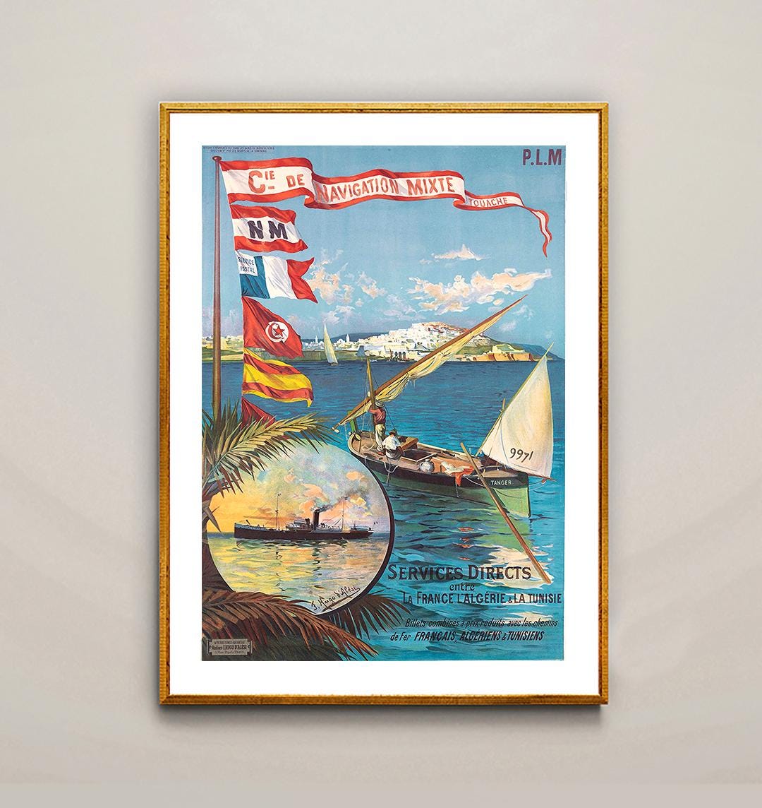 Cie de Navigation Mixte, Services Directs entre La France, L'Algerie, La Tunisie Vintage Travel Poster - Poster Paper or Canvas Print / Gift Idea