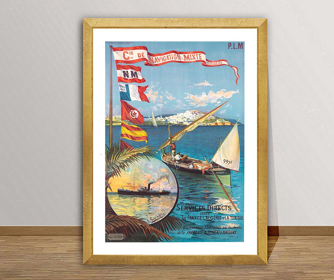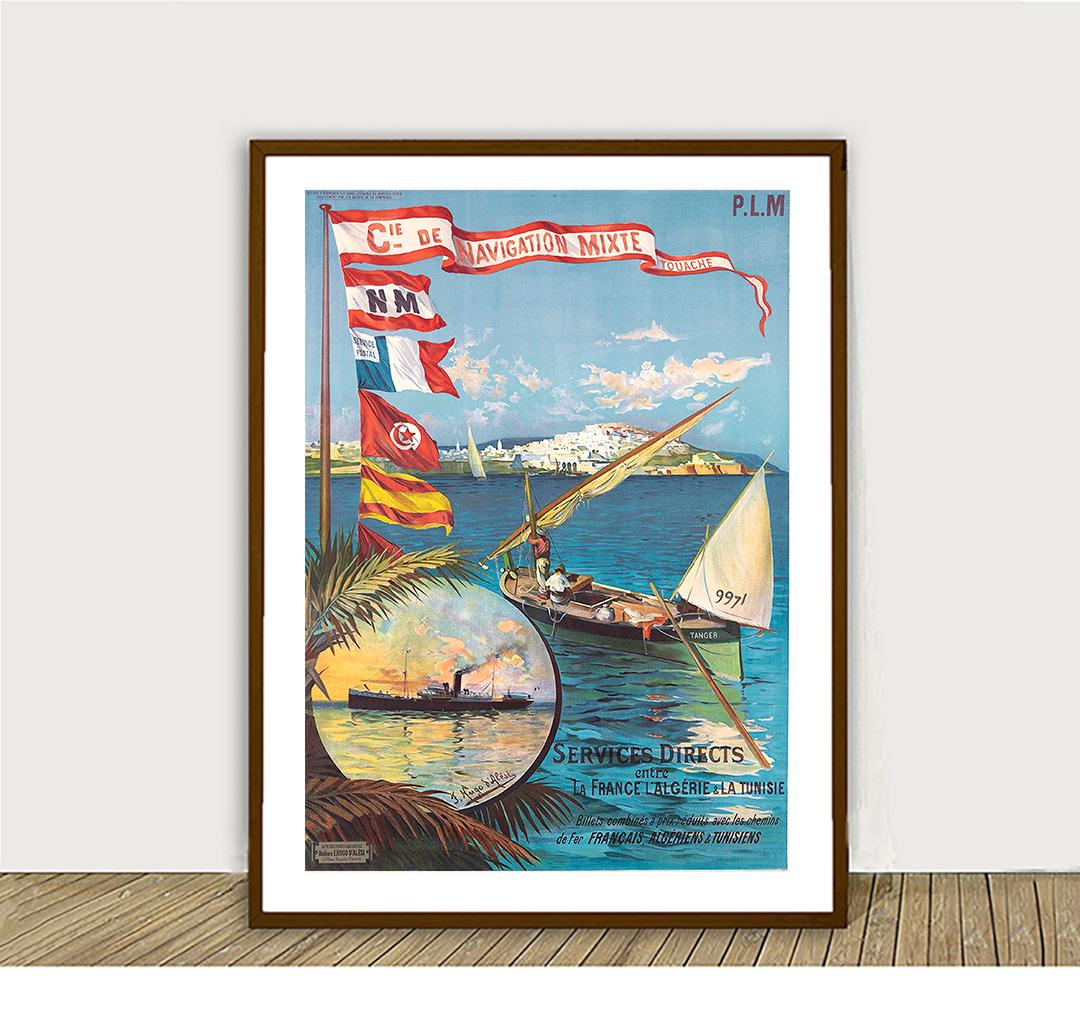 Vintage Travel Poster: Cie de Navigation Mixte, France, Algeria, Tunisia