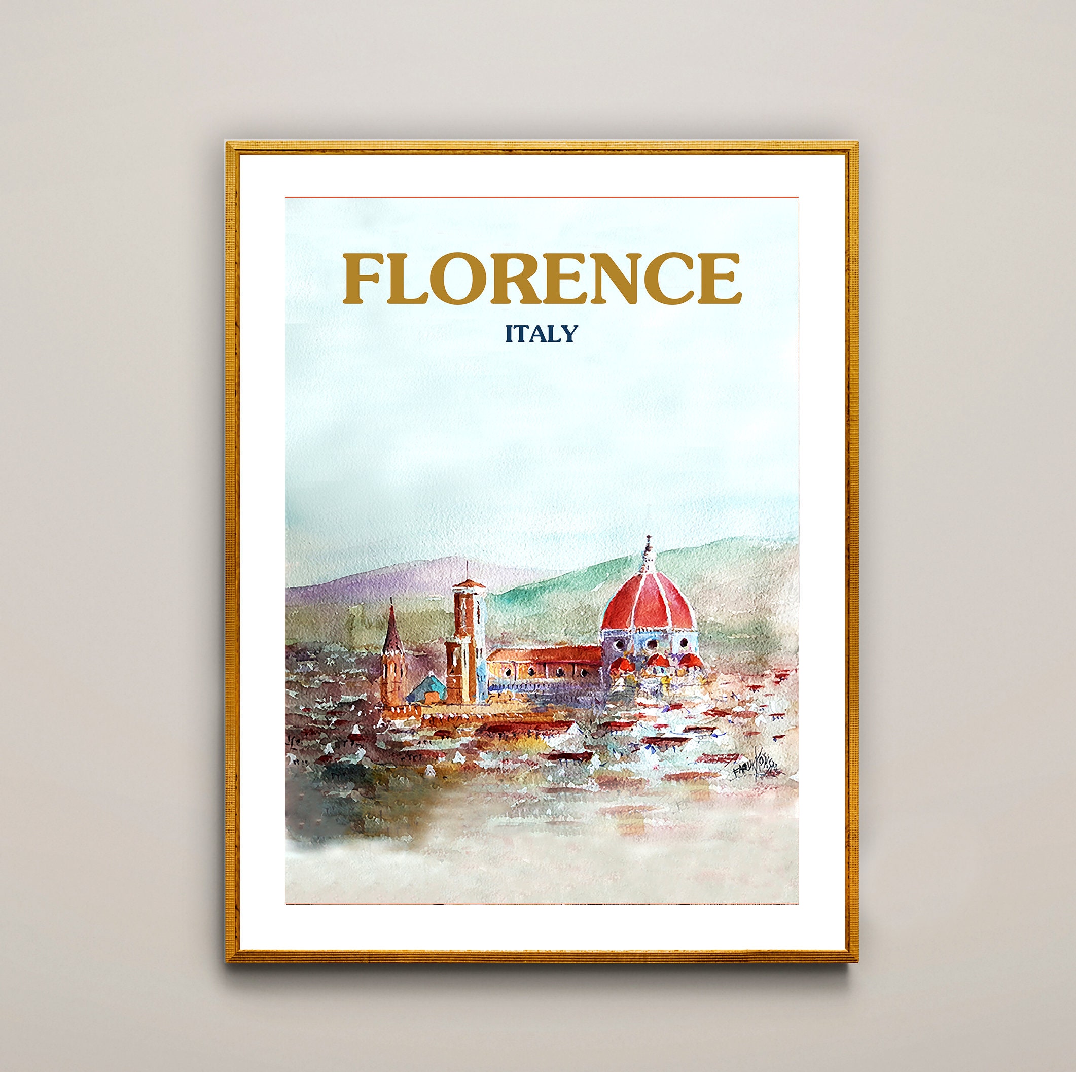 Florence Italy Vintage Travel Poster: Wall Art Print