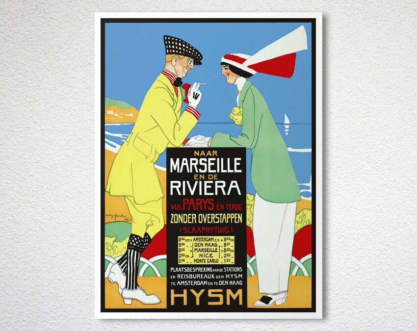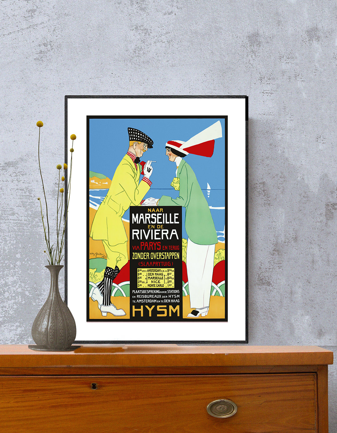 Naar Marseille en de Riviera via Parys Vintage Travel Poster - Poster Paper. Sticker, Canvas Print / Gift Idea