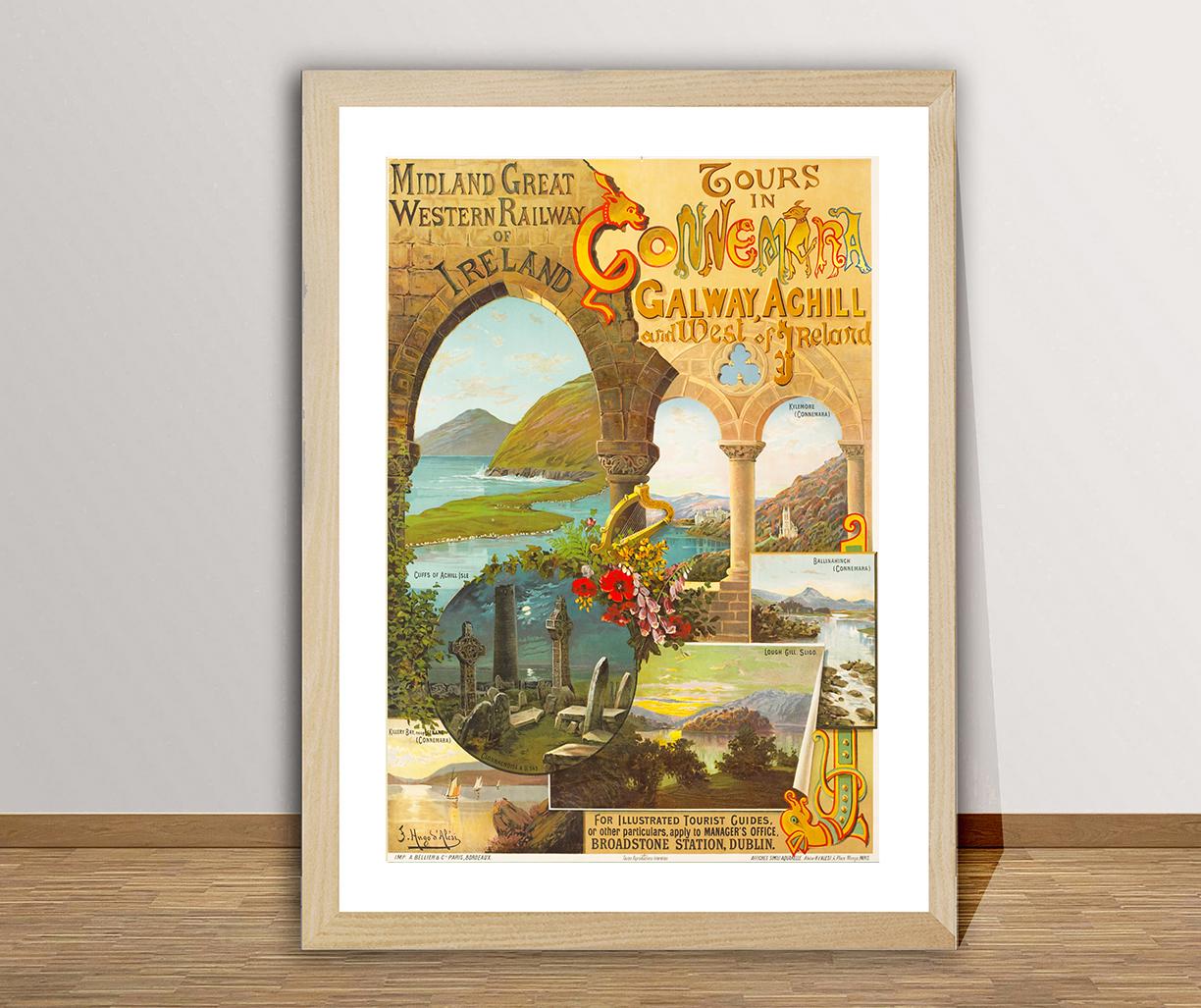 Vintage Ireland Travel Poster: Tours in Connemara, Galway, Achill