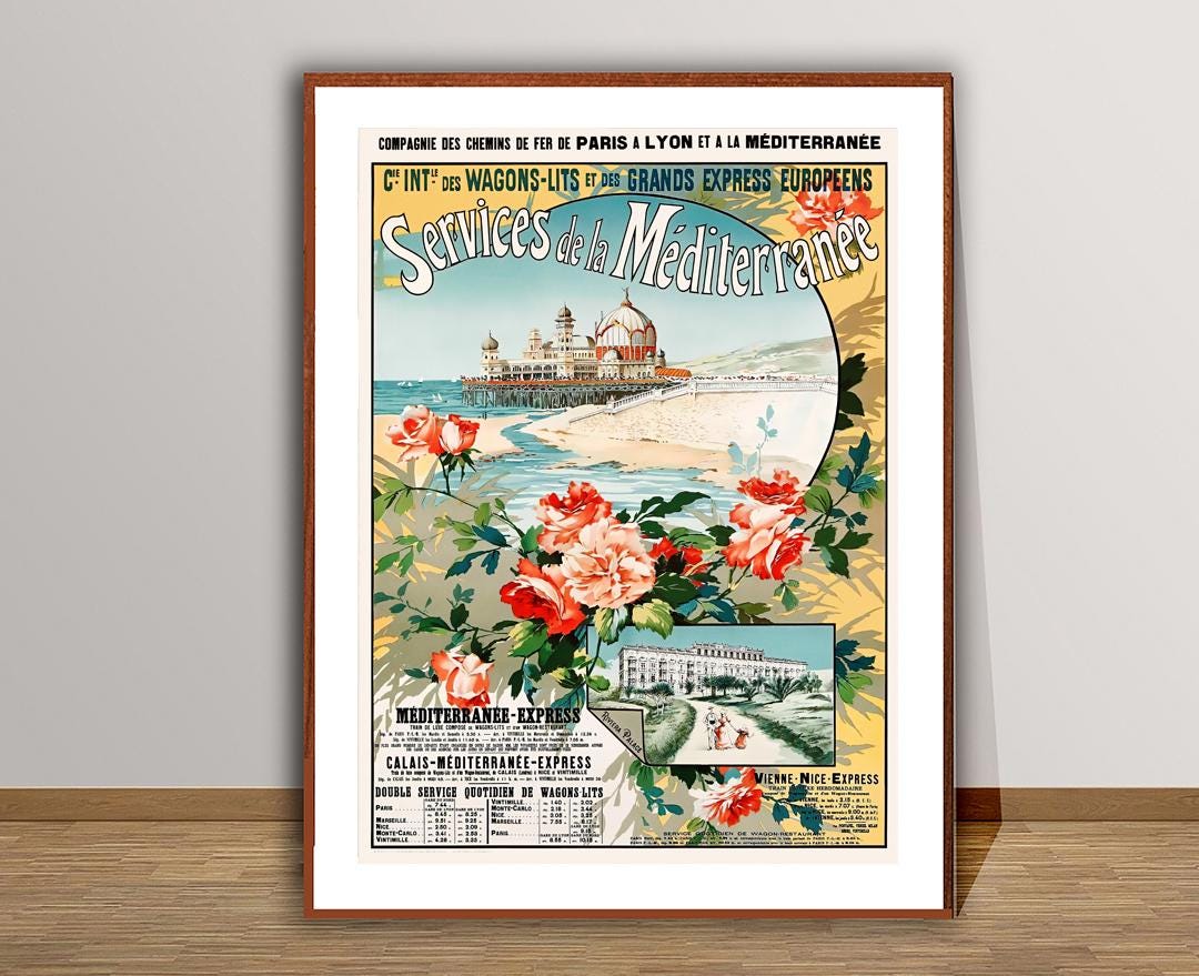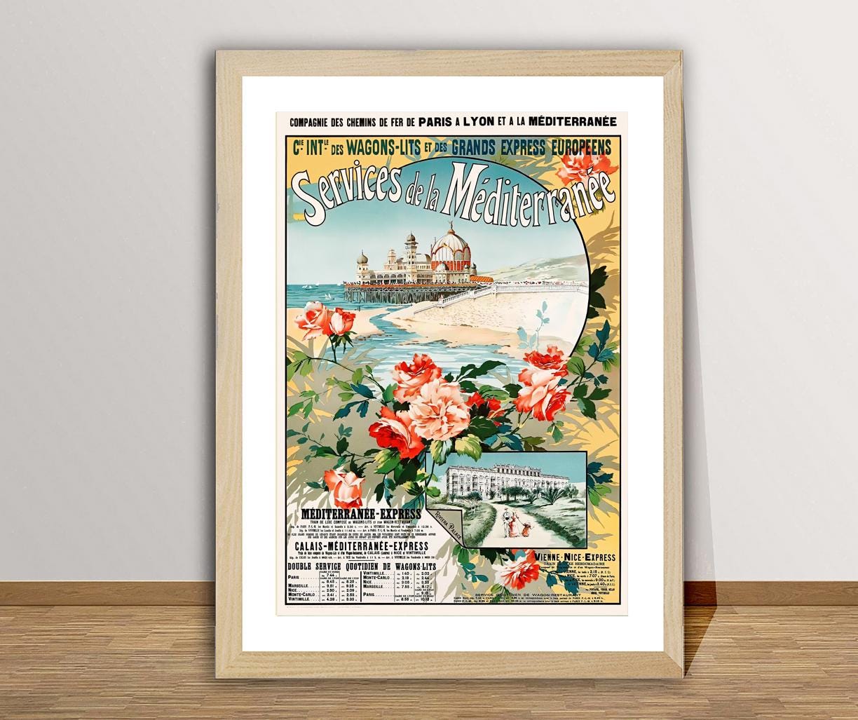 Cie Int le des Wagons Lits et des Grand Express Europeens, Services de la Méditerranée Vintage Travel Poster - Poster Paper or Canvas Print / Gift Idea / Wall Decor