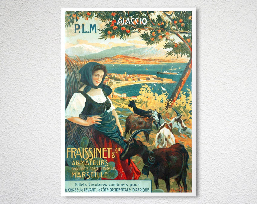 Ajaccio Fraissinet, Cie Armeteurs, Marseille Vintage Travel Poster - Poster Paper or Canvas Print / Gift Idea / Wall Decor