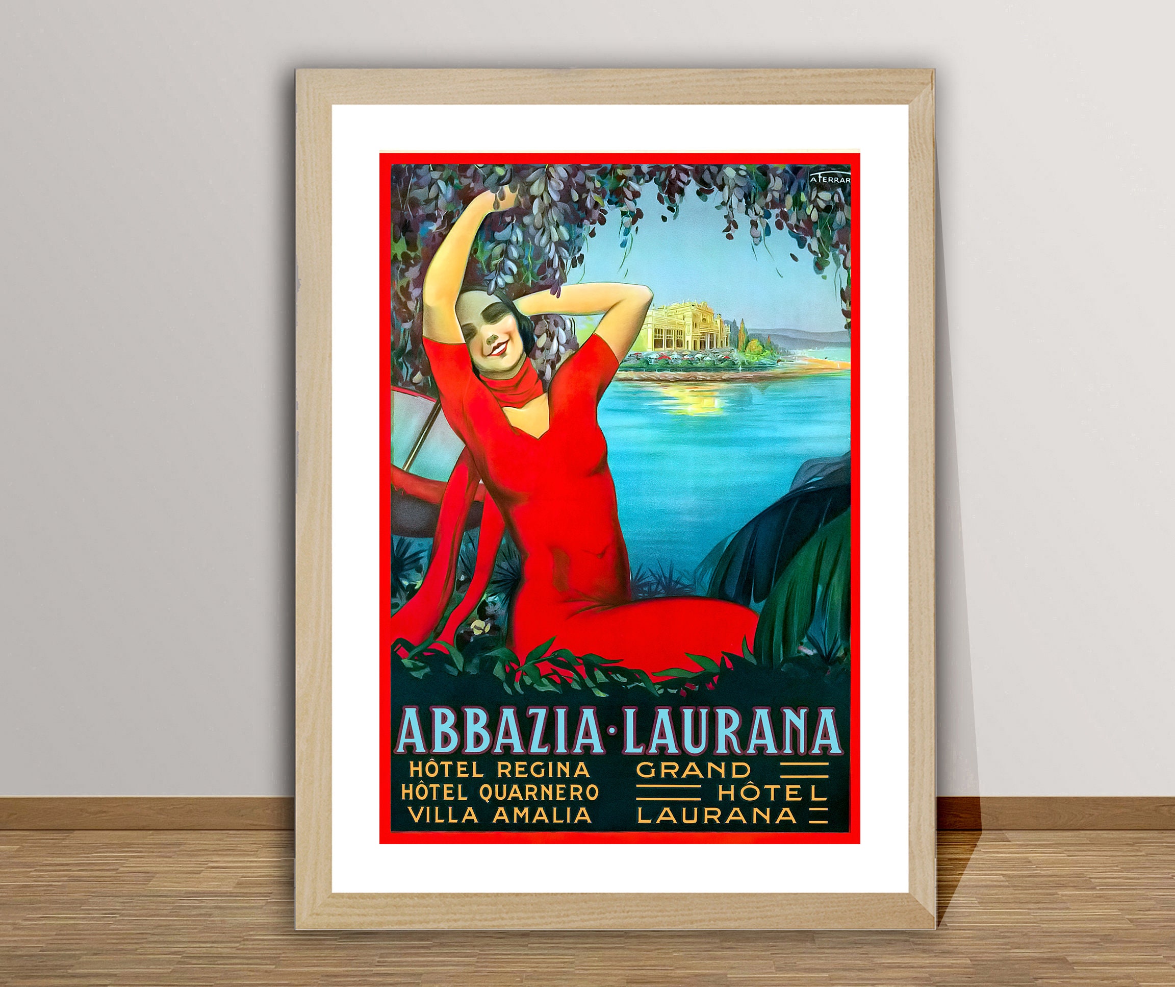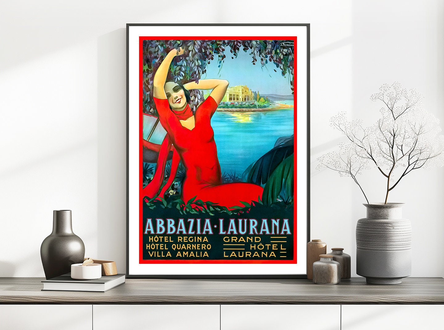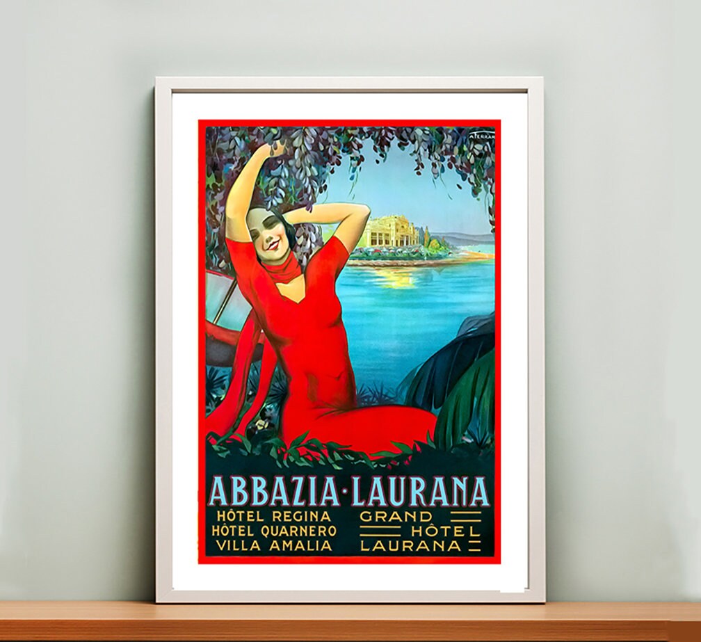 Abbazia Laurana Italy Vintage Travel Poster: Coastal Art Print