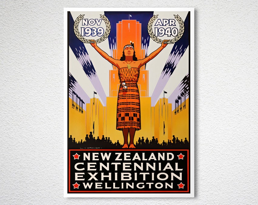New Zealand Centennial Exhibiton Wellington Vintage Travel Poster - Poster Paper or Canvas Print / Gift Idea