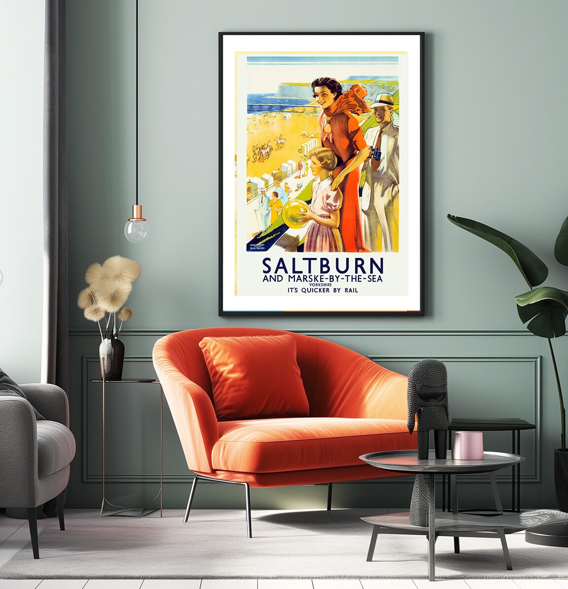 Saltburn and Marske by the Sea, England Vintage Travel Poster - Poster Paper or Canvas Print / Gift Idea / Wall Decor