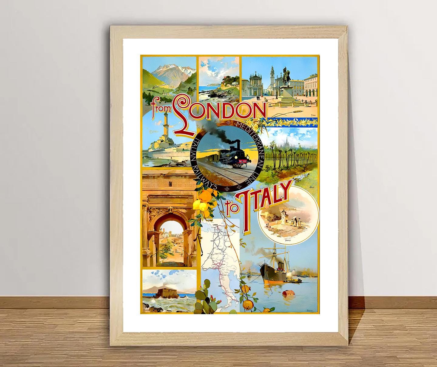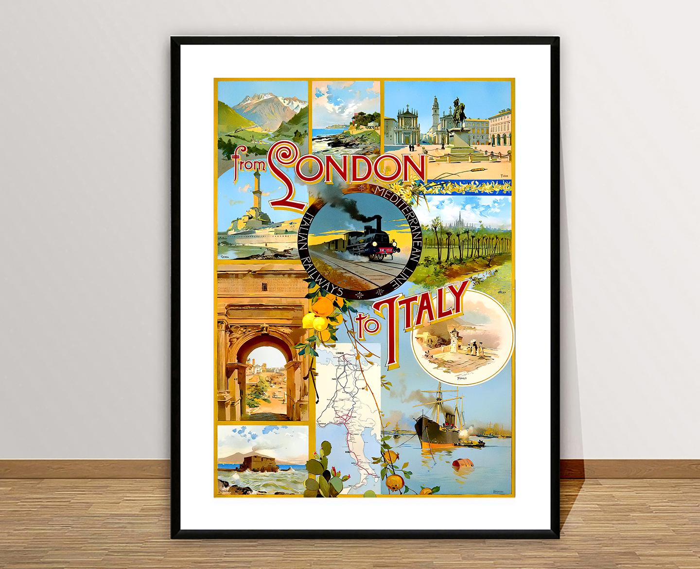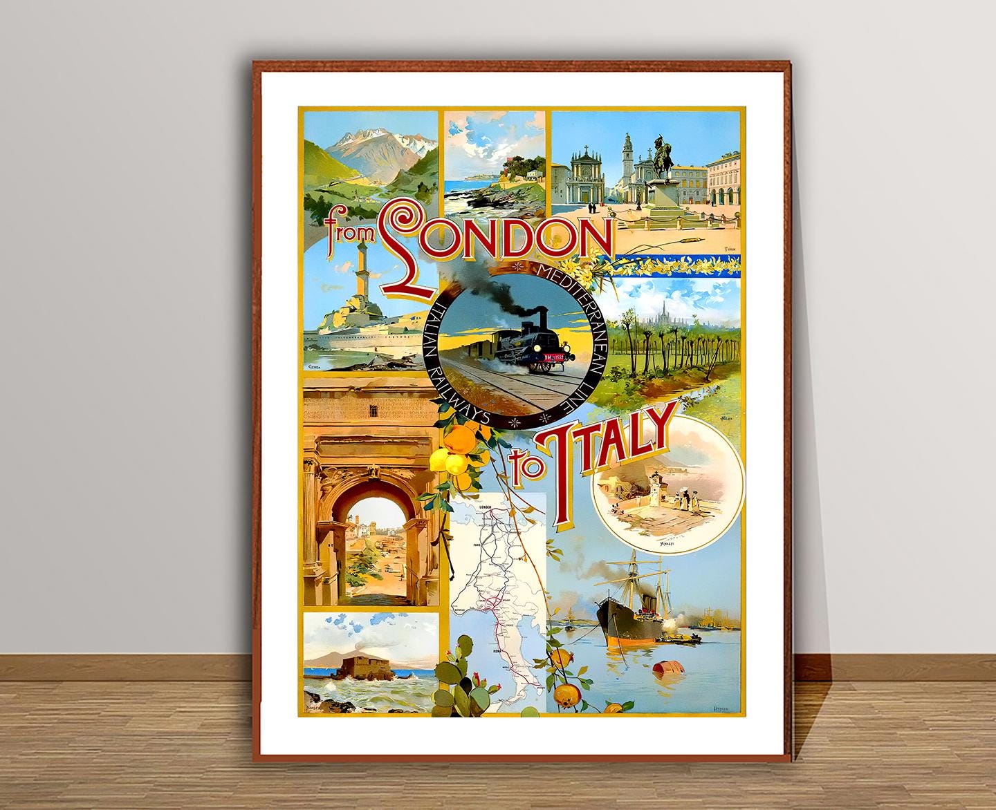From London to Italy Vintage Travel Poster - Poster Paper or Canvas Print