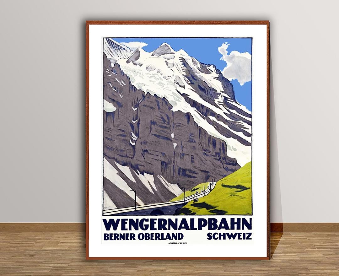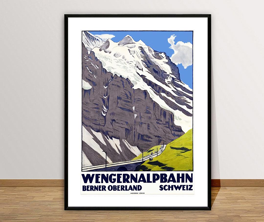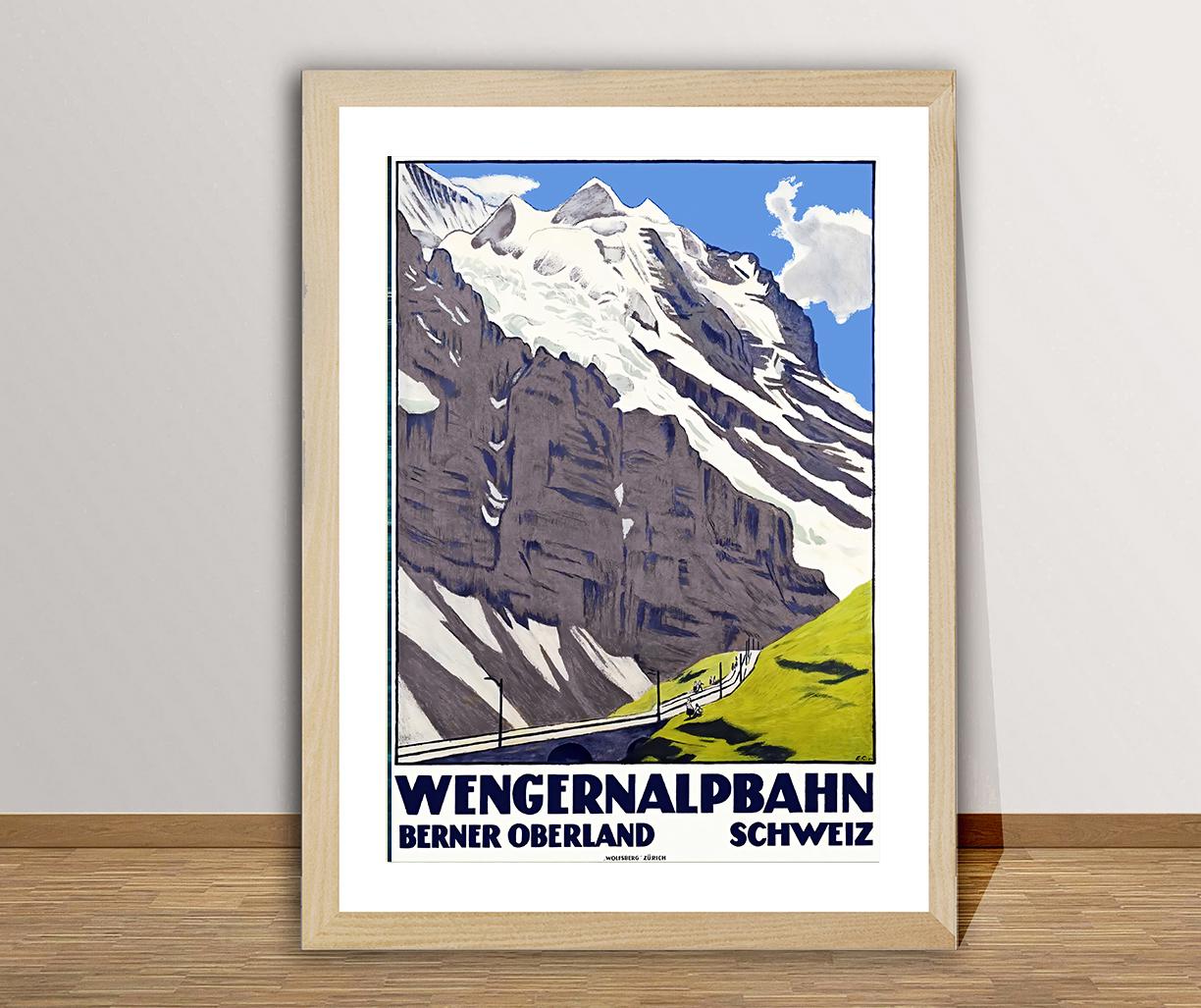Vintage Wengernalp Bahn Travel Poster: Berner Oberland Schweiz Art Print
