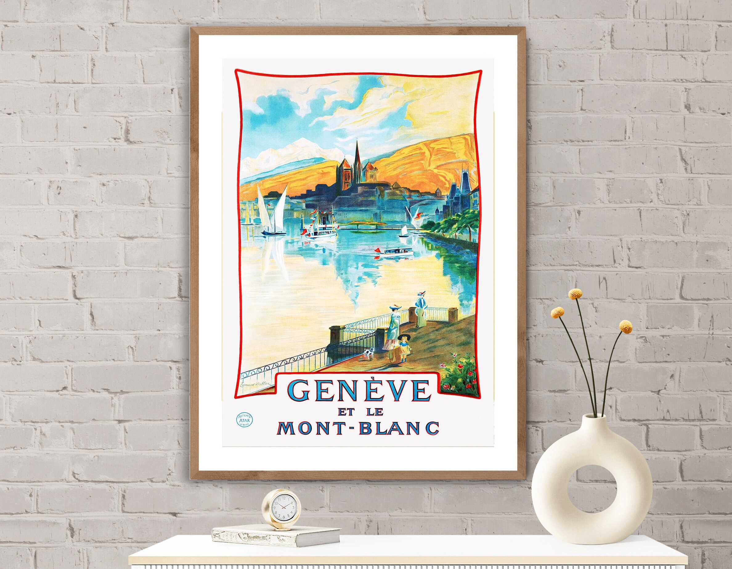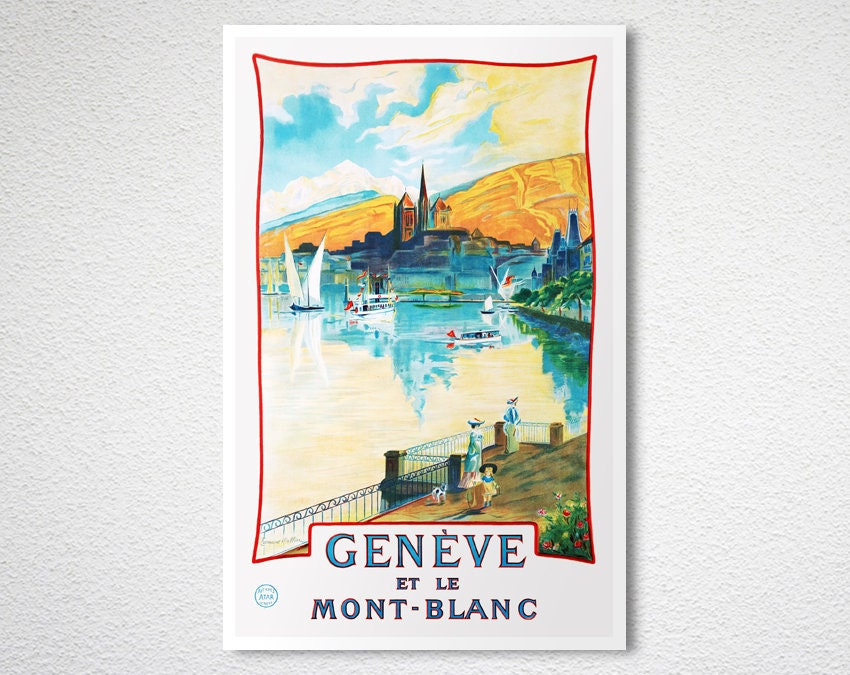 Geneve et Le Mont Blanc Vintage Travel Poster - Poster Paper or Canvas Print / Gift Idea