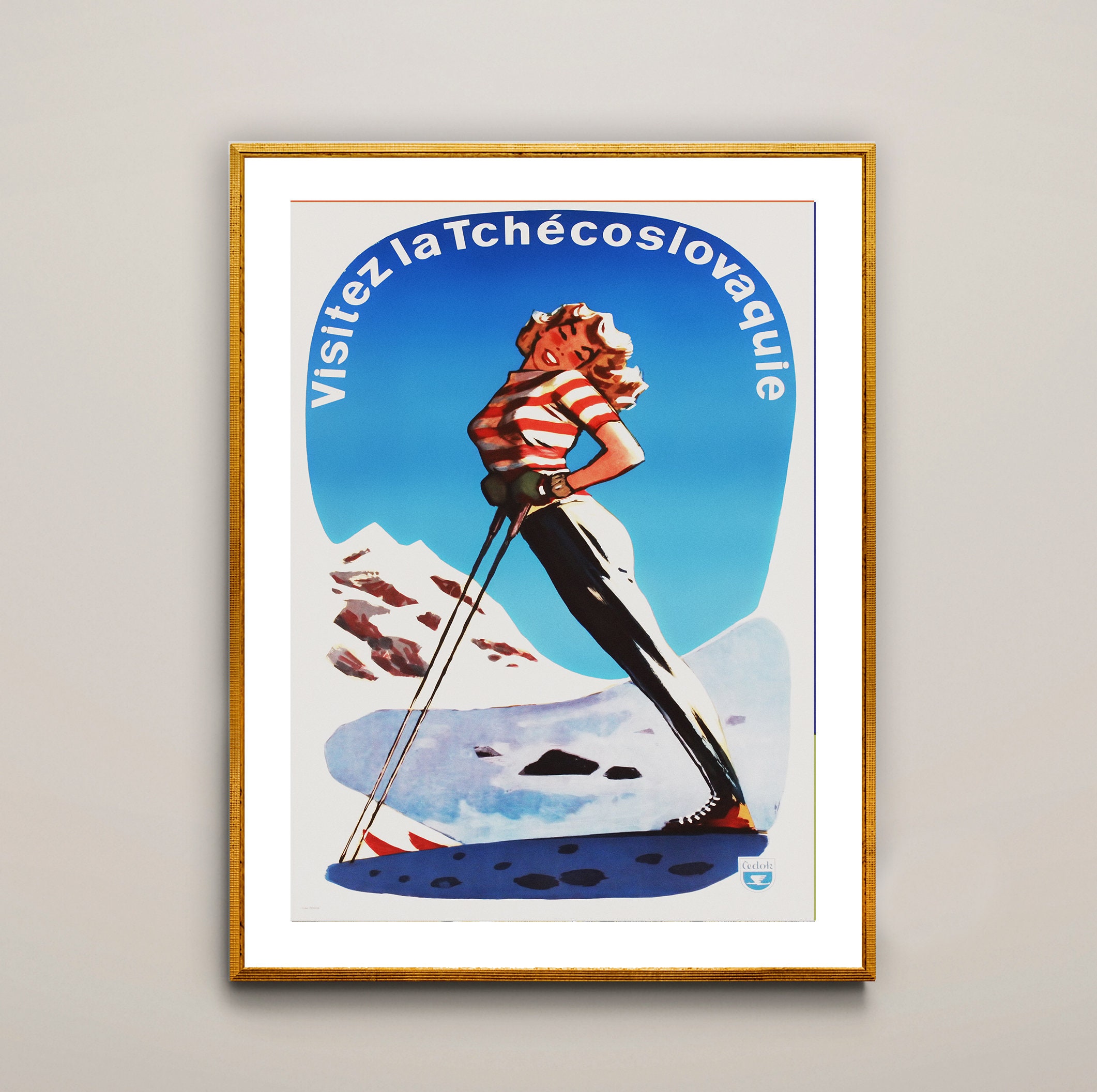 Czechoslovakia Vintage Travel Poster: Skiing Art Print