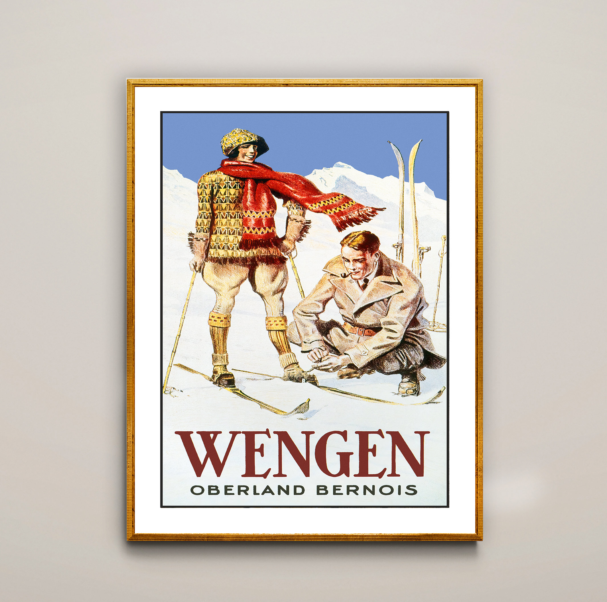 Vintage Wengen Switzerland Ski Poster: Oberland Bernois Travel Art