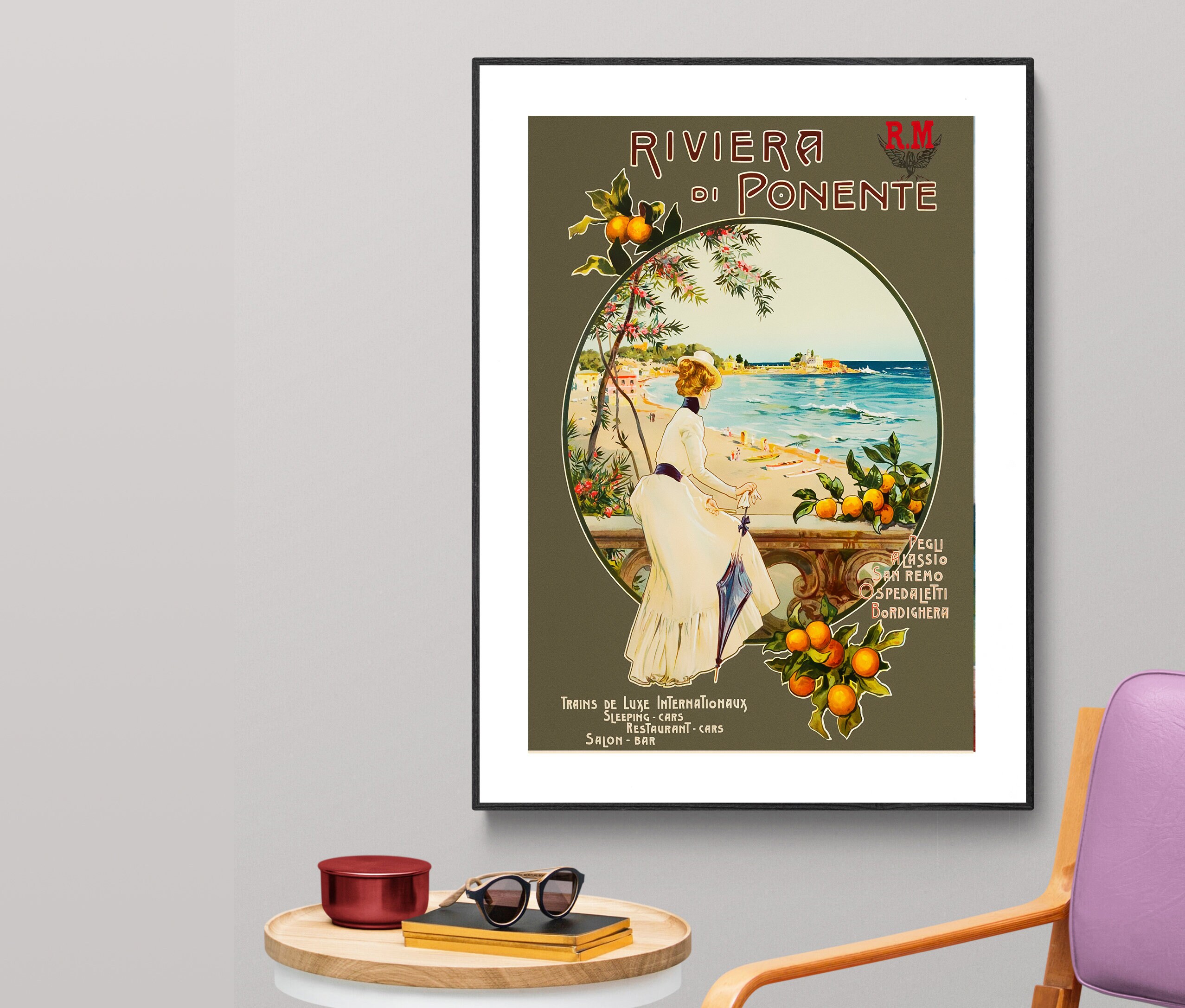 Riviera di Ponente Vintage Travel Poster: Italy Coastal Art