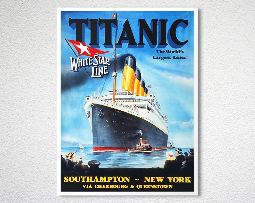 Titanic White Star Line, Southampton - New York Vintage Poster, 1912 - Poster Paper or Canvas Print / Gift Idea