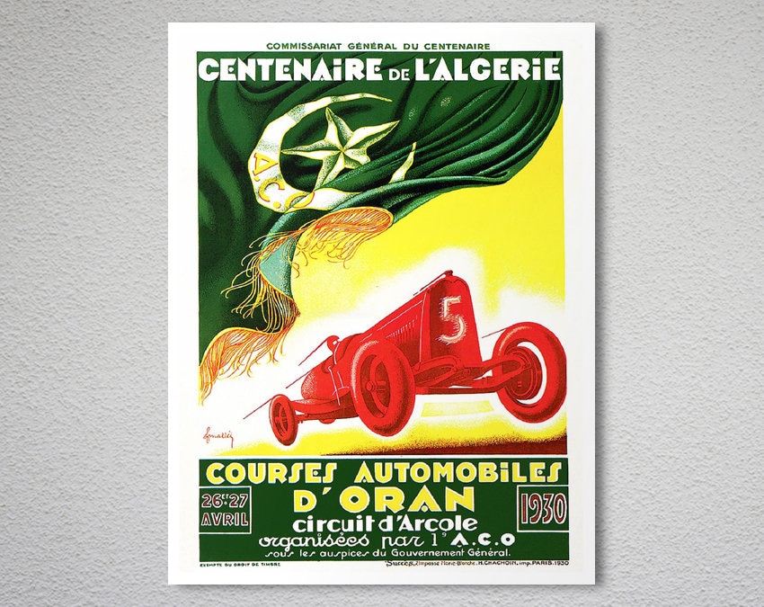 Centenaire de L'Algerie Courses Automobiles d'Oran, Circuit d'Arcole, 1930 Vintage Travel Poster