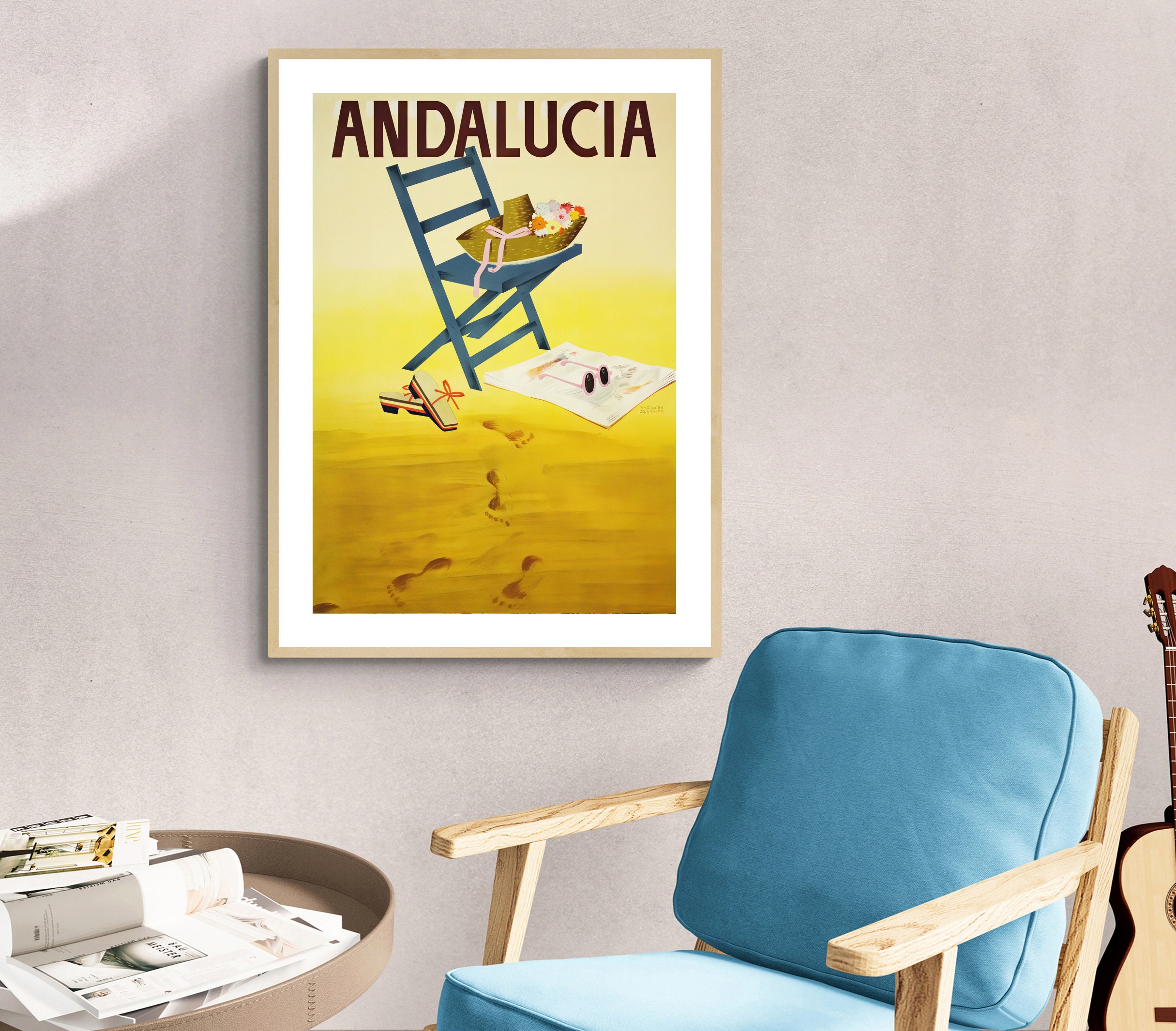 Andalucia Spain Vintage Travel Poster: Beach Scene Art Print