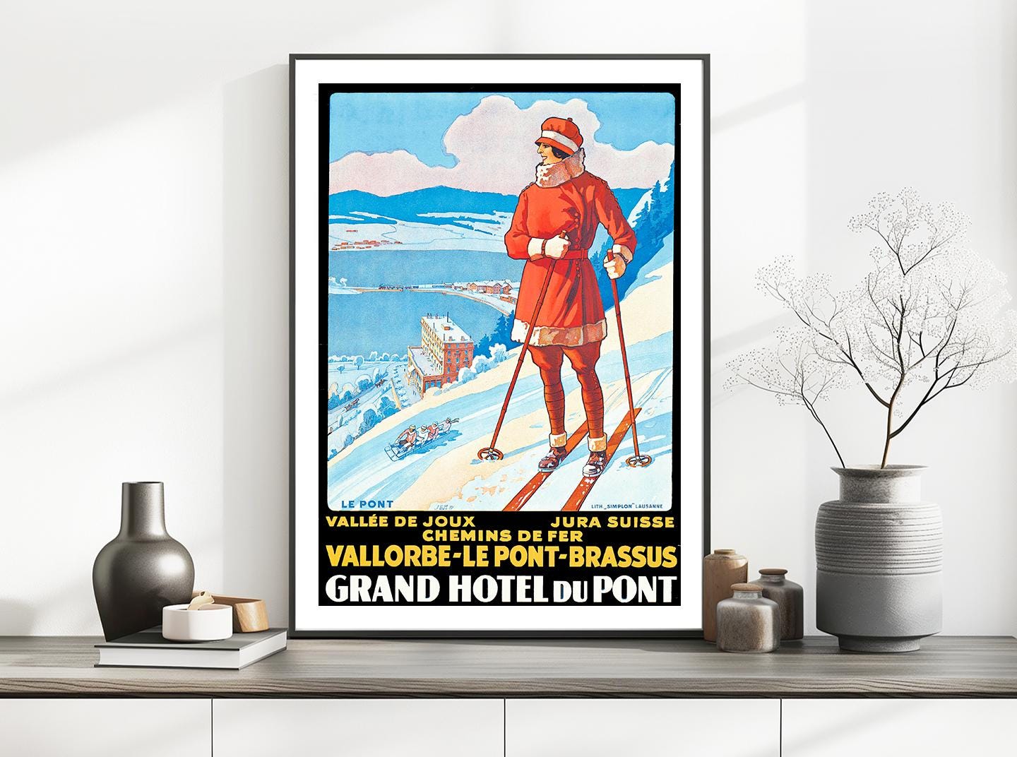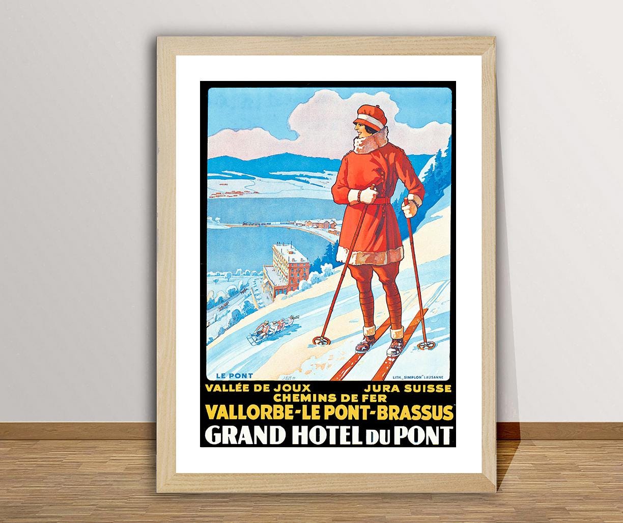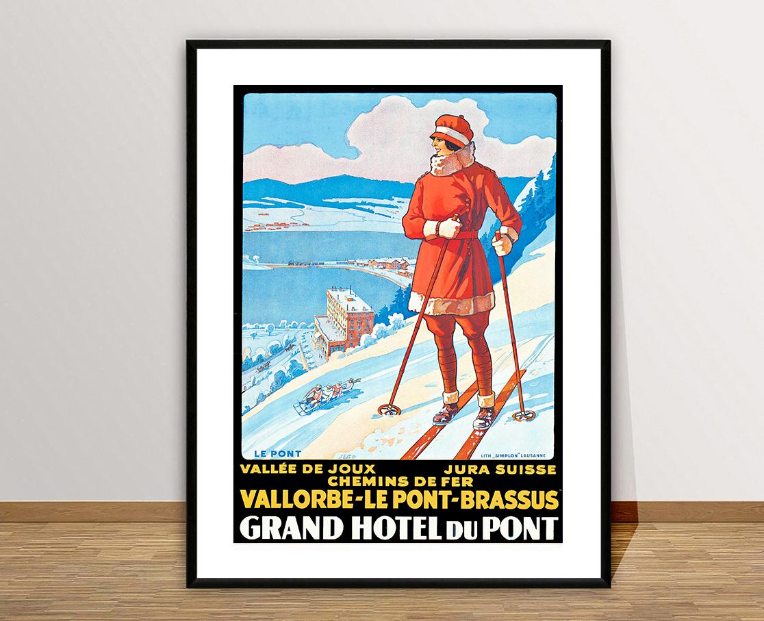 Vallee de Joux, Jura Suisse, Vallorbe, Le Pont, Brassus Grand Hotel du Pont Vintage Travel Poster - Poster Paper or Canvas Print / Gift Idea / Wall Decor