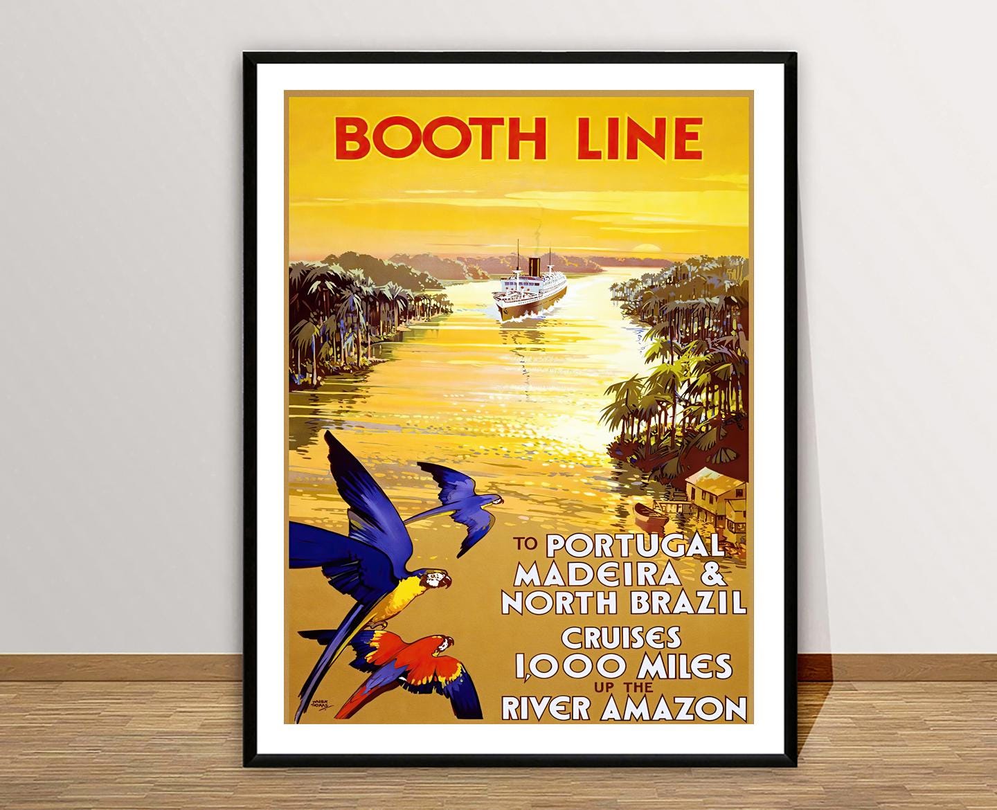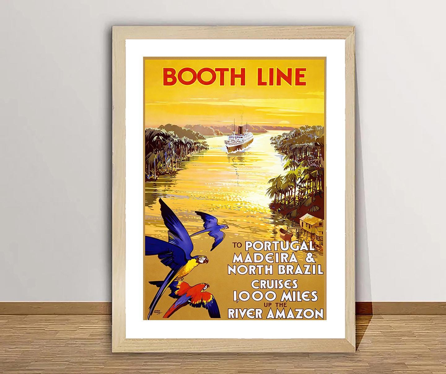 Booth Line Cruises Vintage Travel Poster: Portugal, Brazil, Amazon