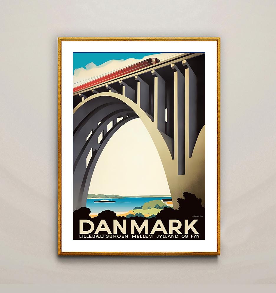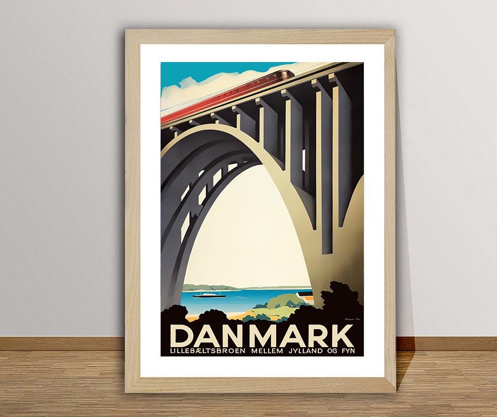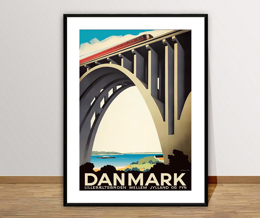 Danmark, Lillebeltsbroen Mellem Jylland Vintage Travel Poster - Poster Paper or Canvas Print / Gift Idea