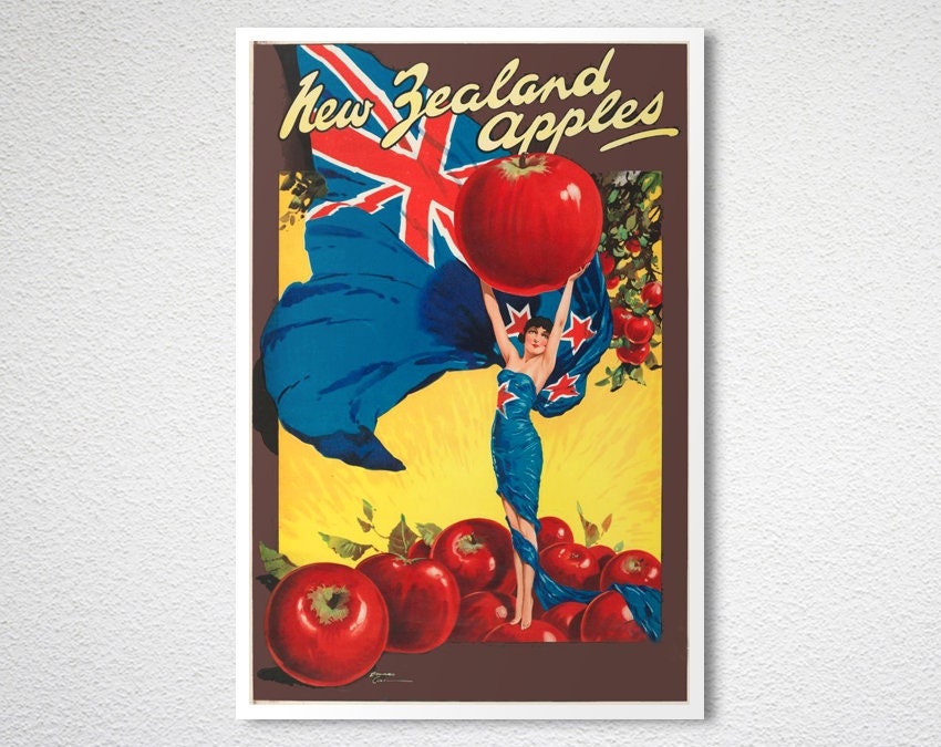 New Zealand Apples Vintage Travel Poster - Poster Paper or Canvas Print / Gift Idea