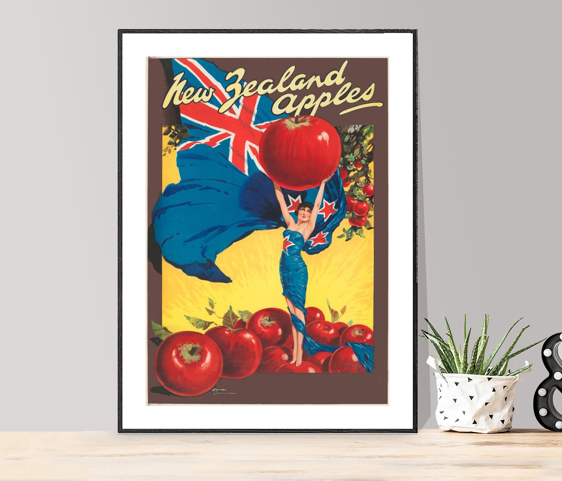New Zealand Apples Vintage Travel Poster: Retro Kitchen Art