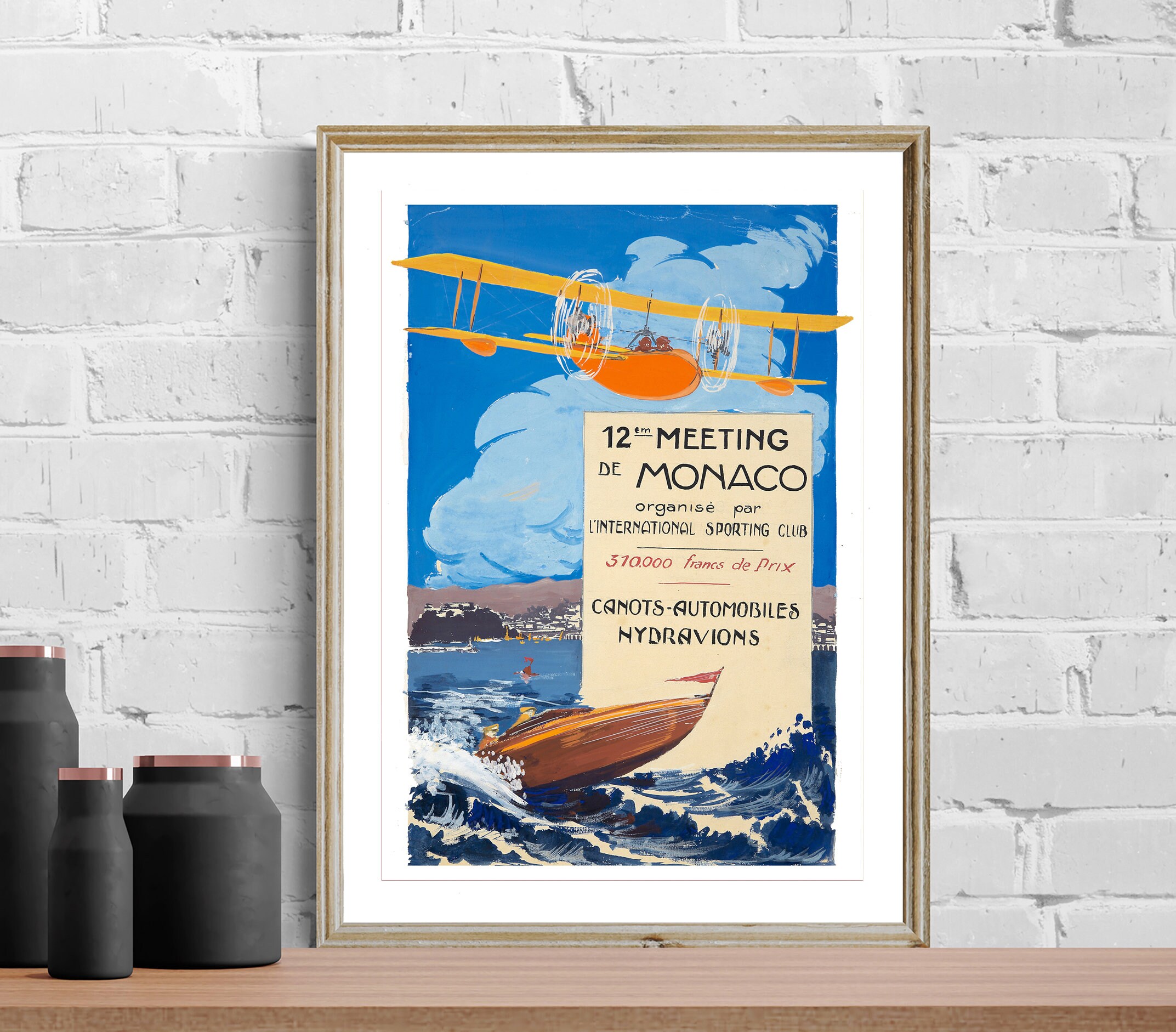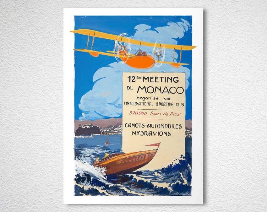 12 em Meeting de Monaco, Canots, Automobiles, Hydravions Vintage Travel Poster - Poster Paper or Canvas Print / Gift Idea