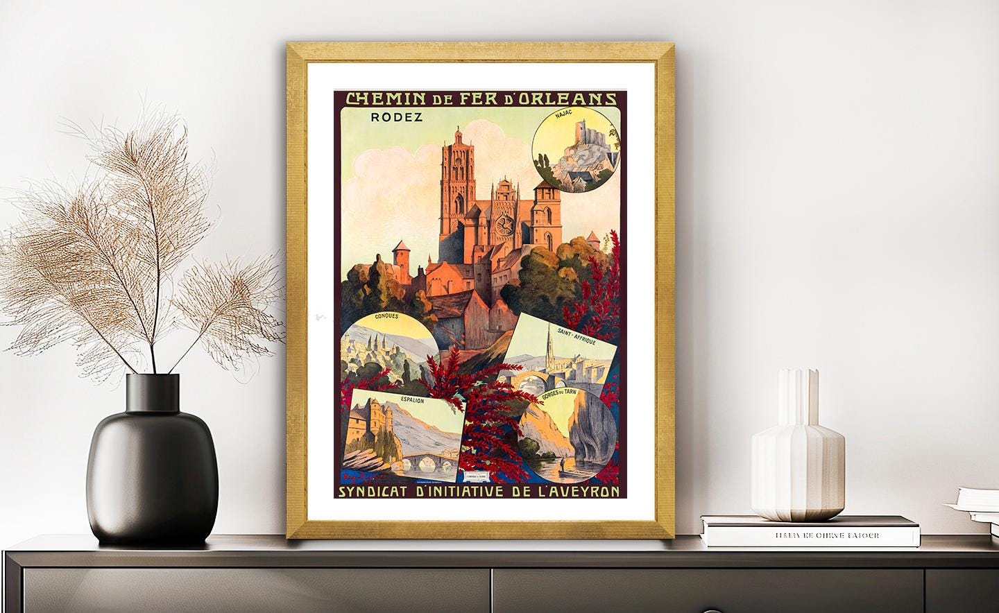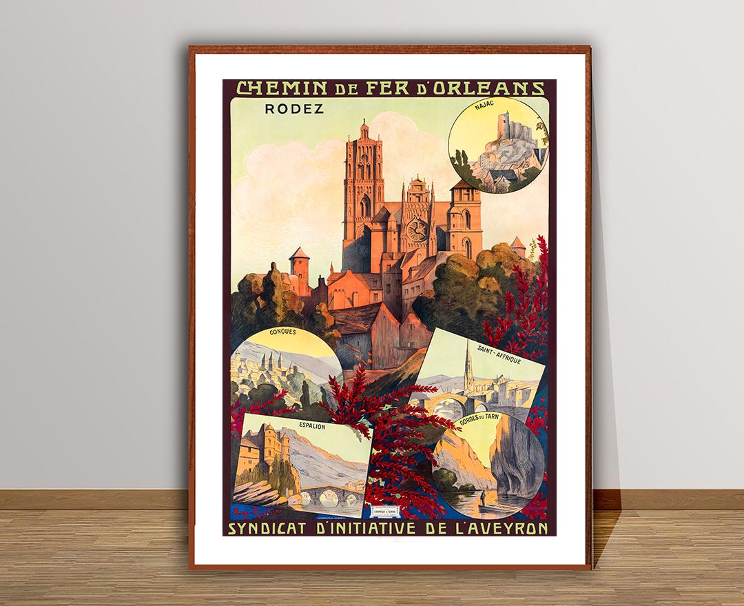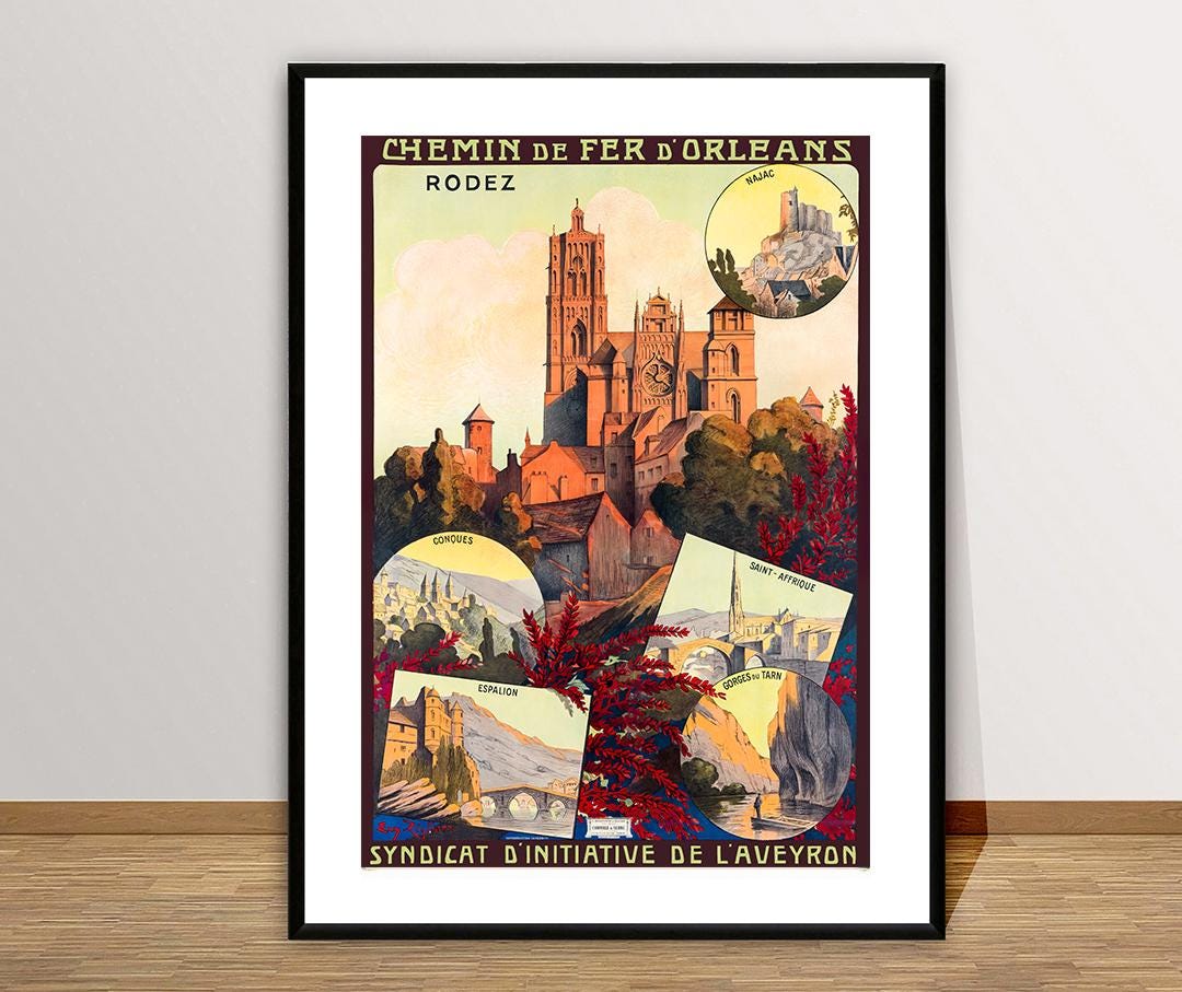 Rodez, France Vintage Travel Poster - Poster Paper or Canvas Print / Gift Idea