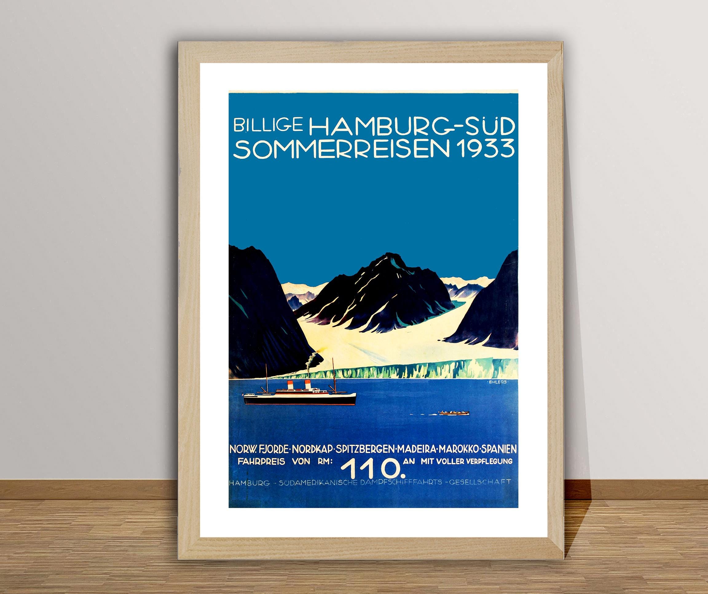 Billige Hamburg Süd Sommer Reisen Vintage Travel Poster - Poster Paper or Canvas Print / Gift Idea
