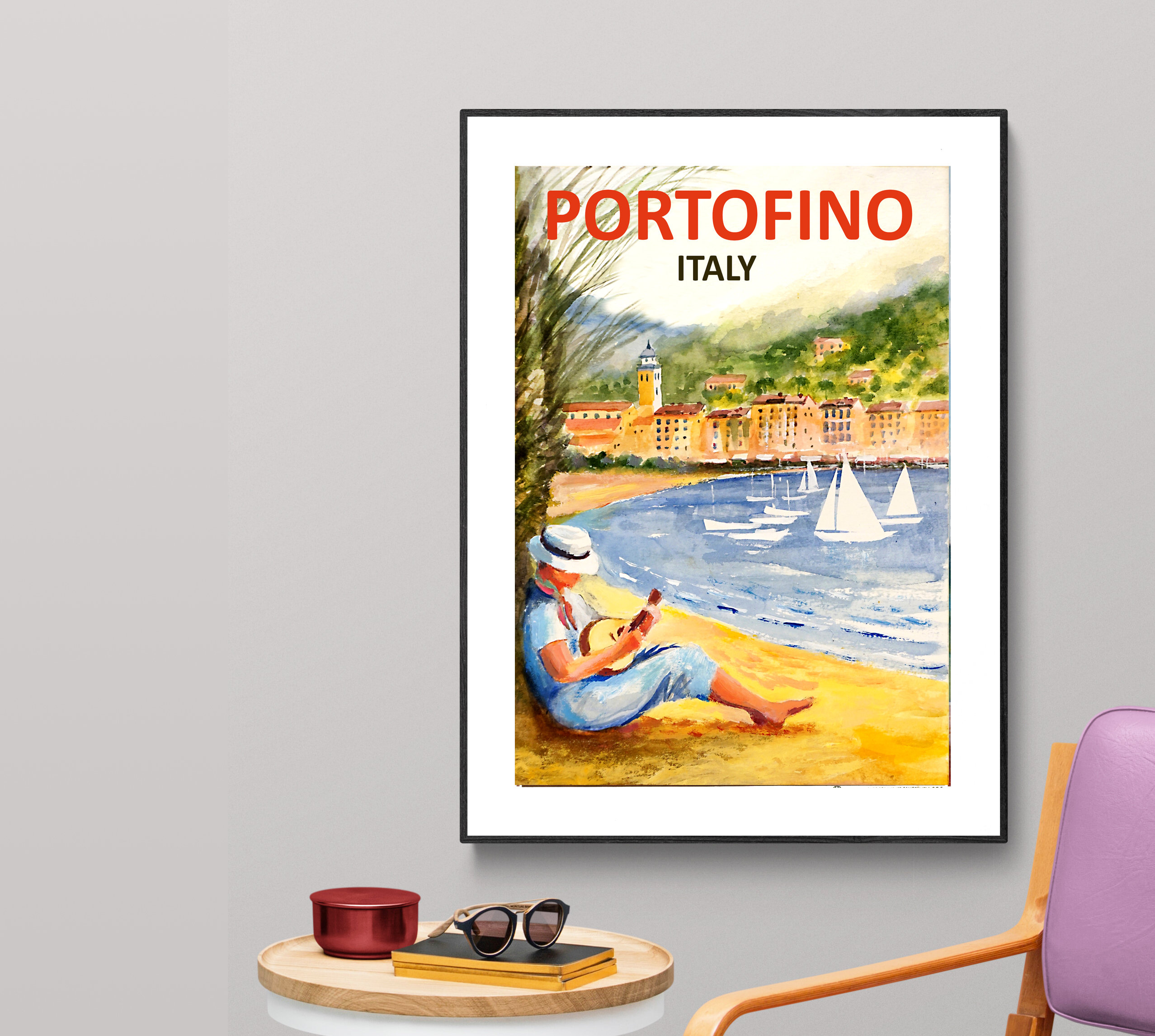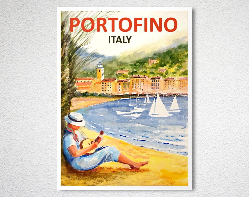 Portofino Italy Vintage Travel Poster: Coastal Art Print