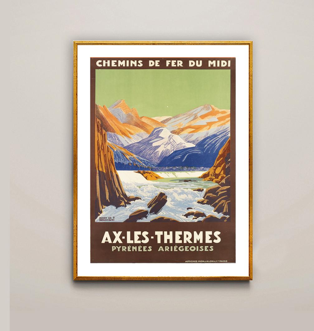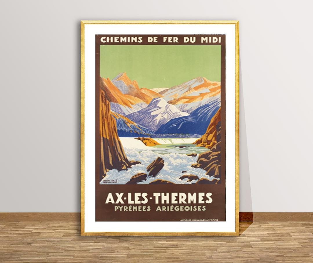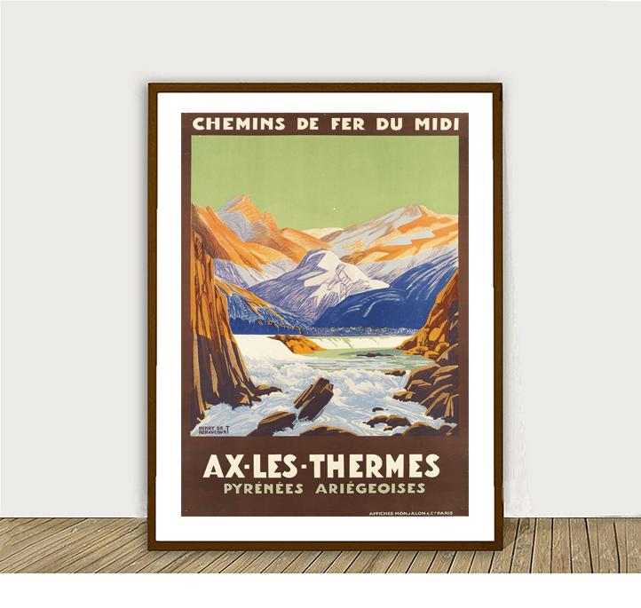 Ax Les Thermes Pyrenees Ariegeoises Vintage Travel Poster - Poster Paper or Canvas Print / Gift Idea
