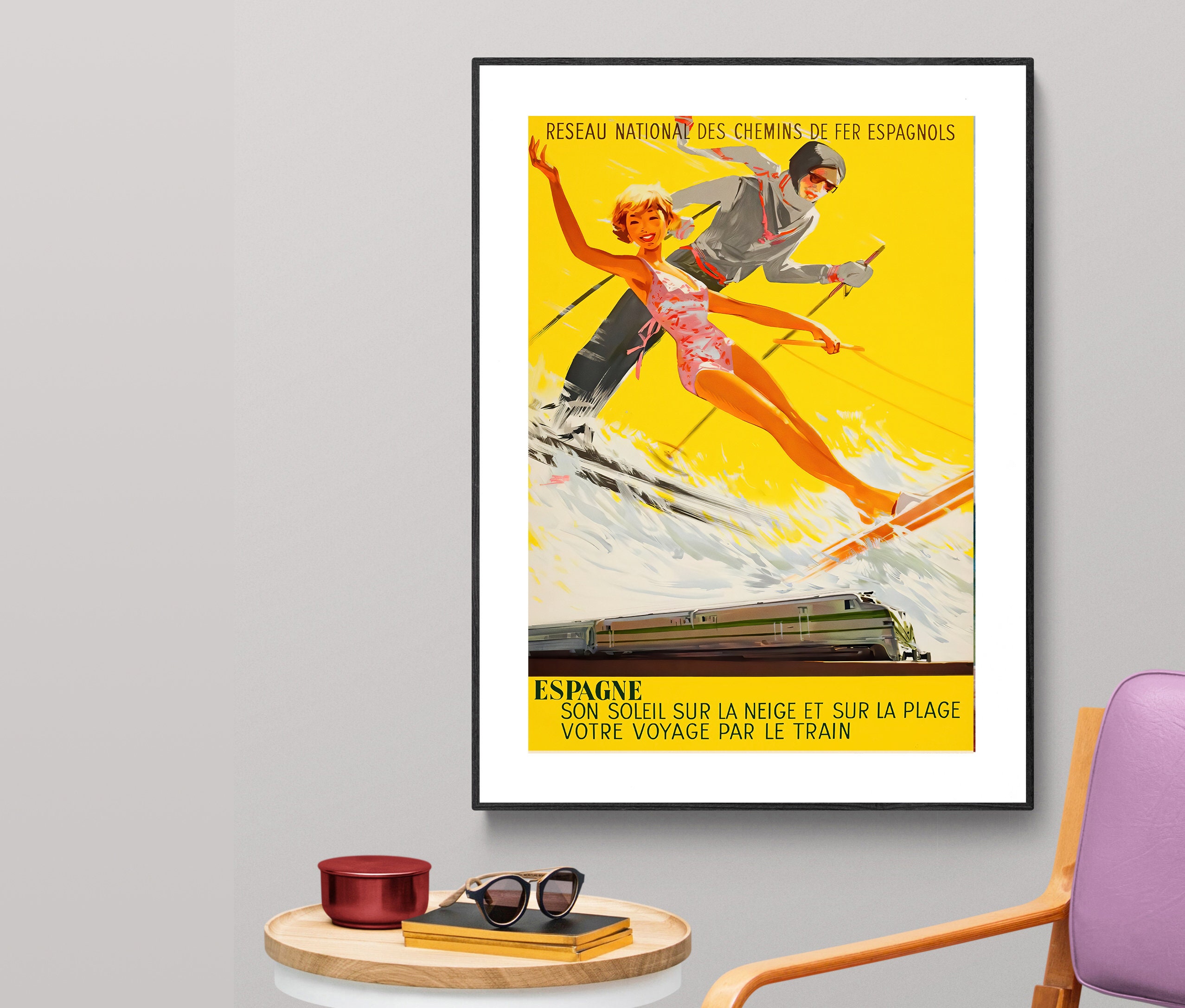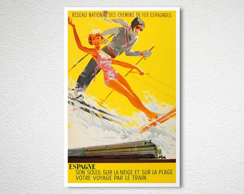 Spain Vintage Travel Poster: Espagne Ski Scene, Retro Art Print