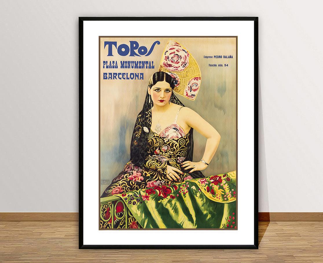 Toros Plaza Monumental Barcelona Vintage Travel Poster - Poster Paper or Canvas Print