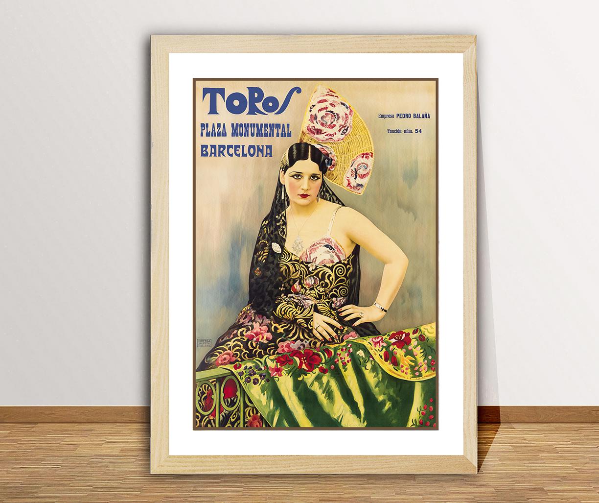 Barcelona Spain Vintage Travel Poster: Toros Plaza Monumental Art Print