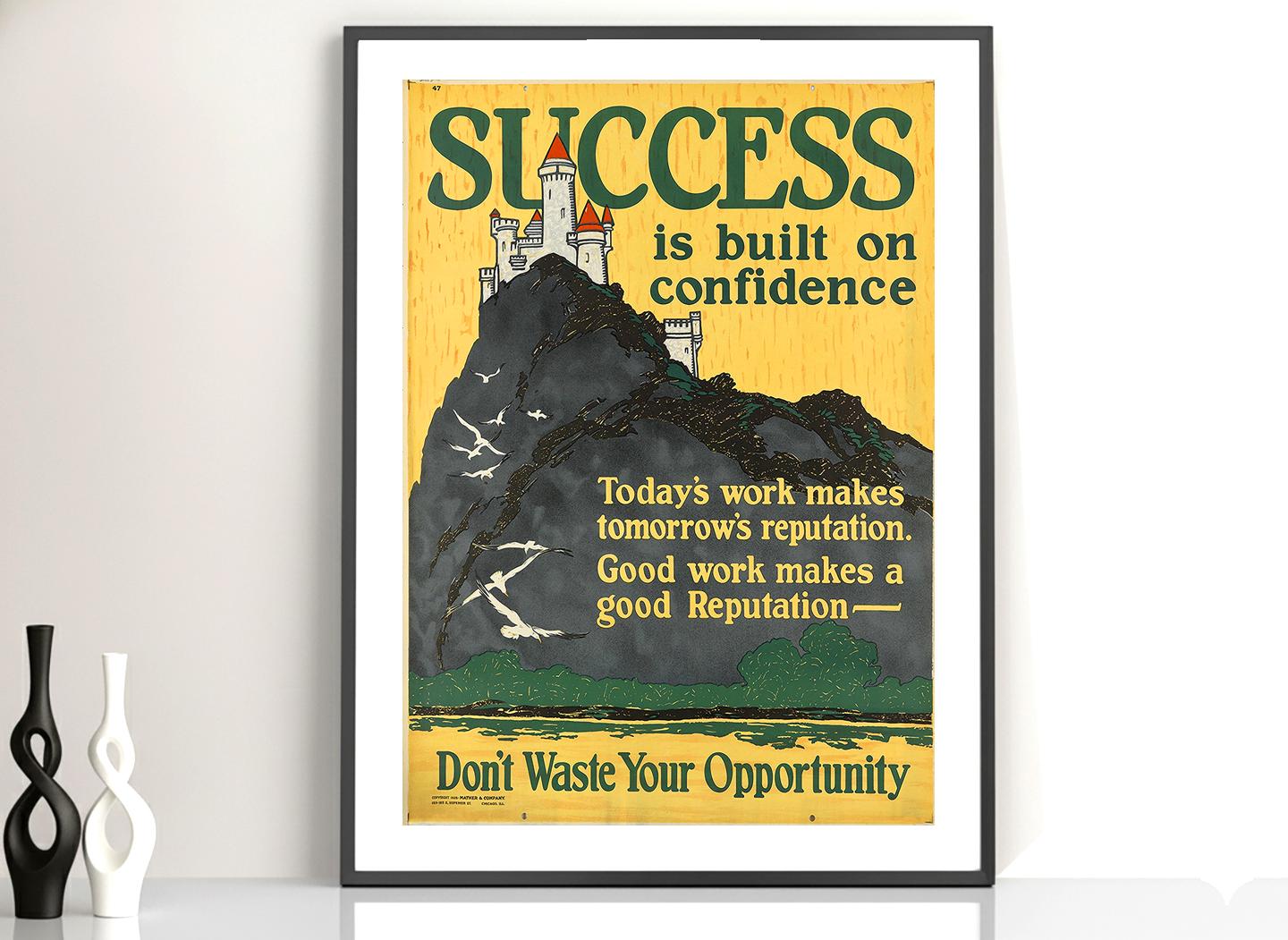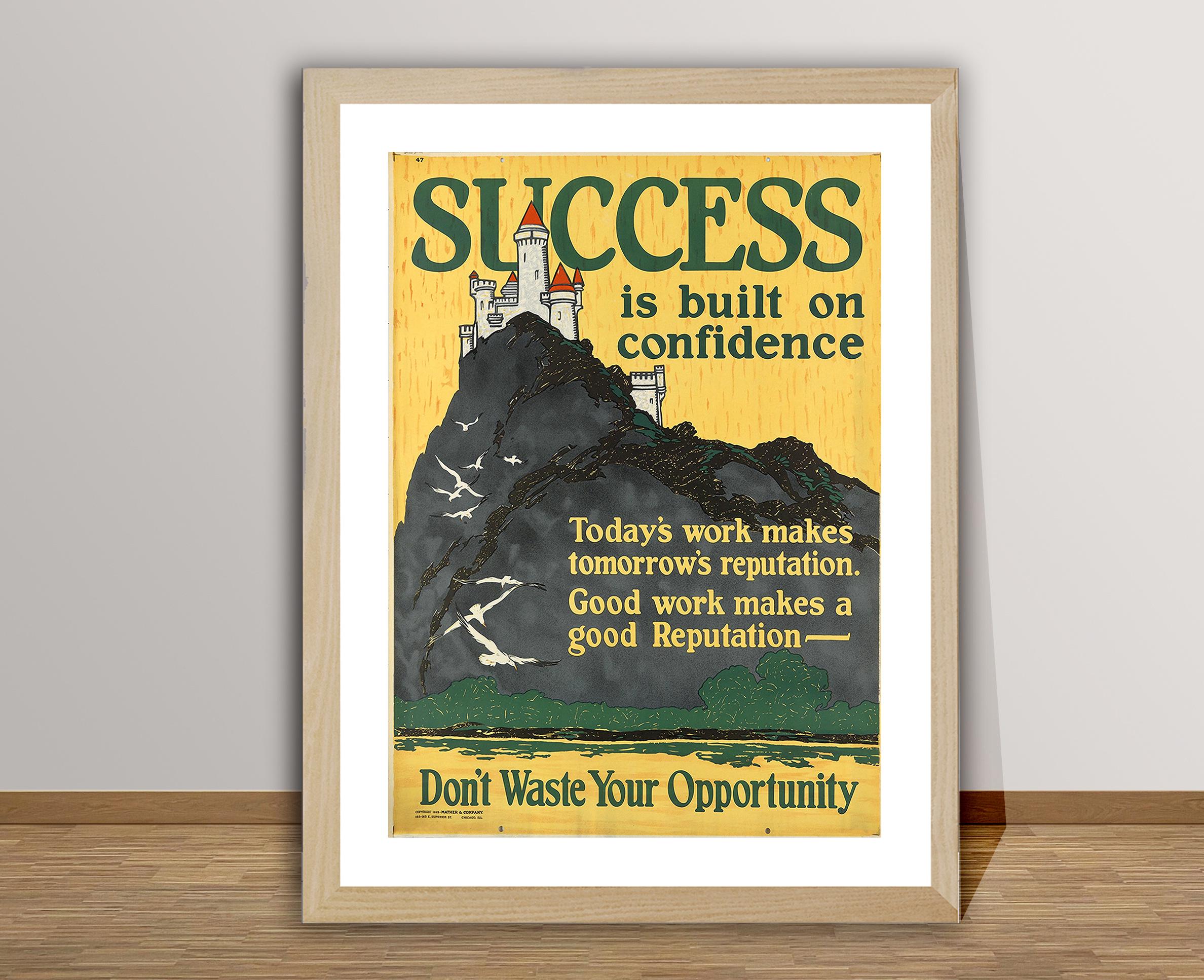 Vintage Success is Built on Confidence Motivational Poster - Poster Paper or Canvas Print / Gift Idea / Wall Decor
