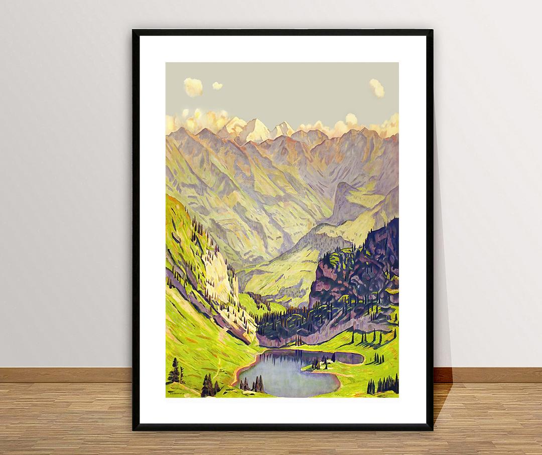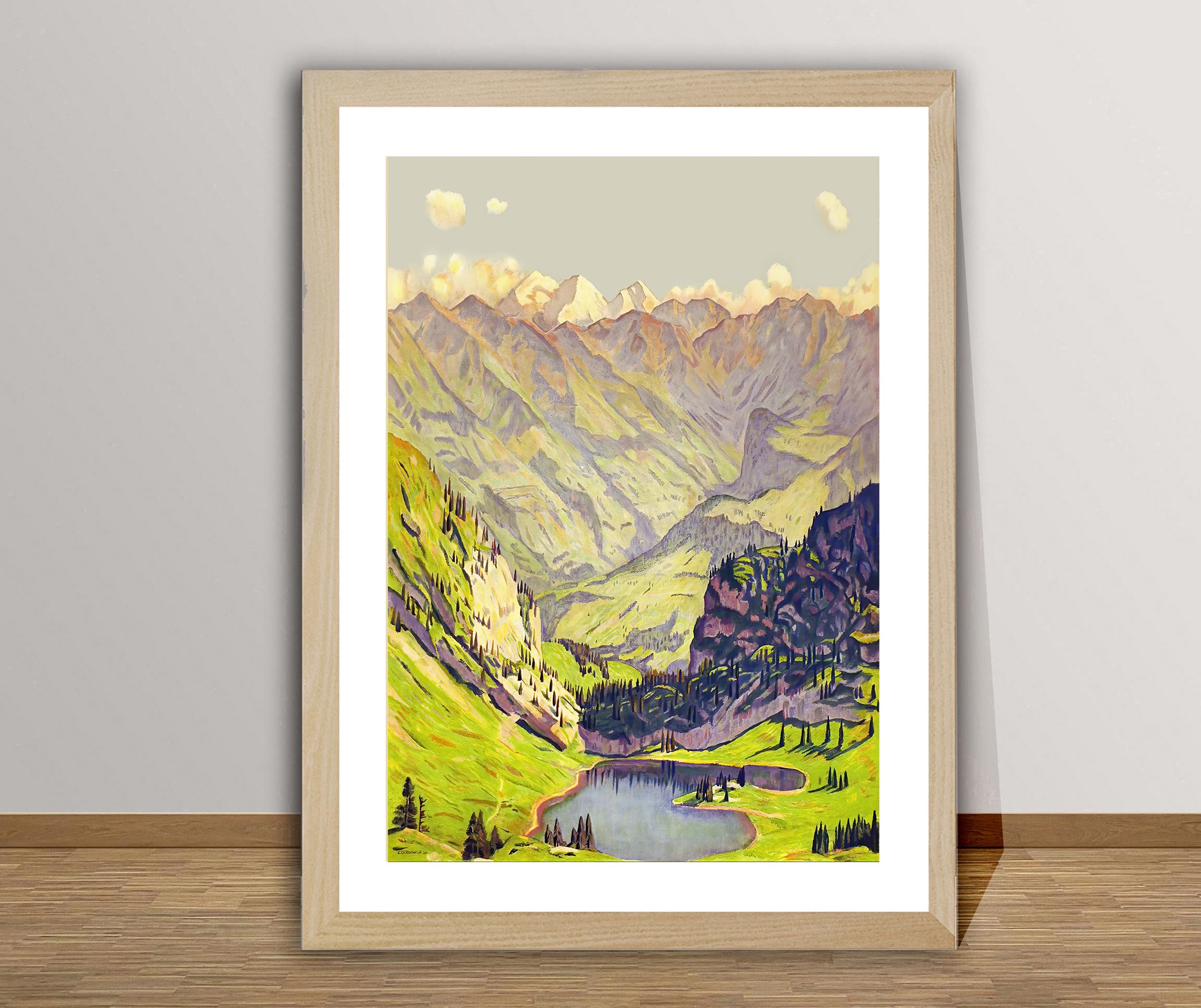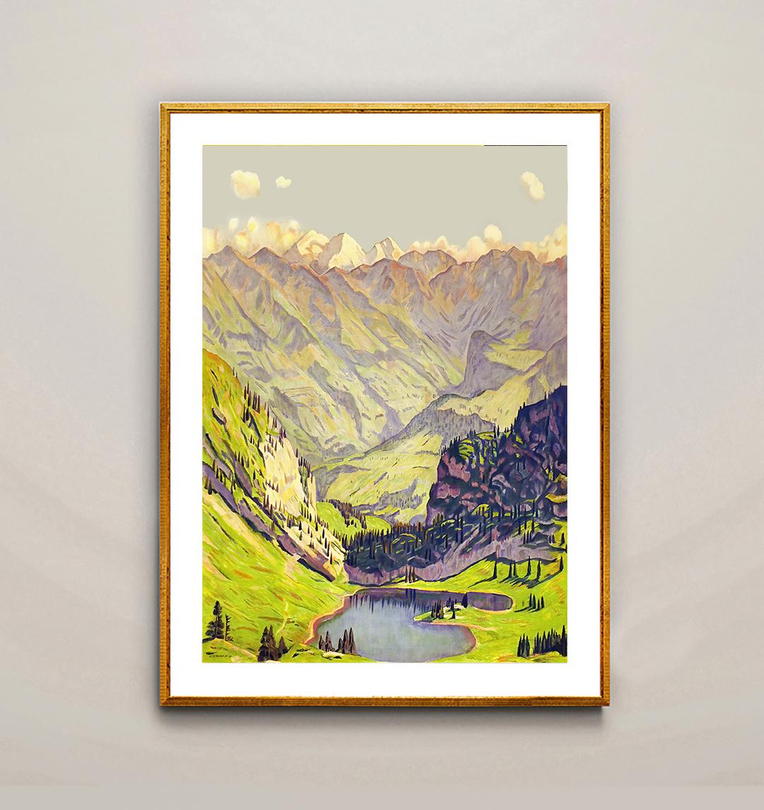 Hinterstockensee, Schweiz Vintage Travel Poster: Swiss Alps Decor