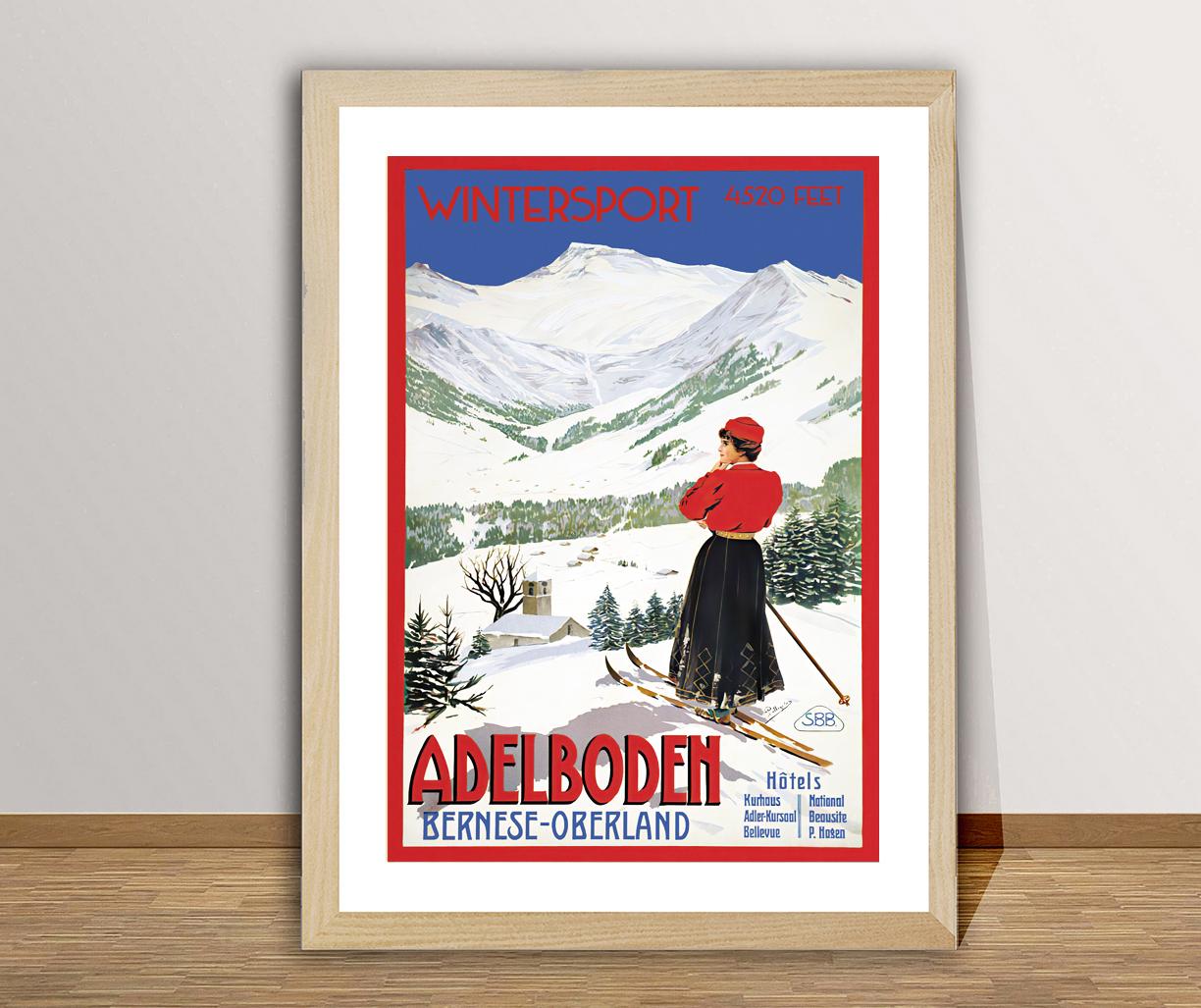 Vintage Adelboden Ski Poster: Swiss Winter Sport Print