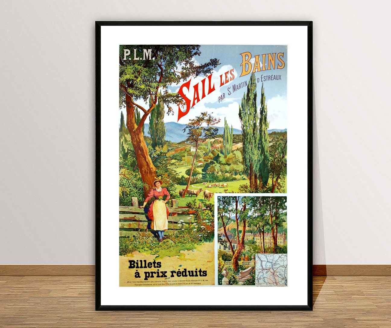 Sail Les Bains Vintage Travel Poster: St Martin d'Estreaux, France