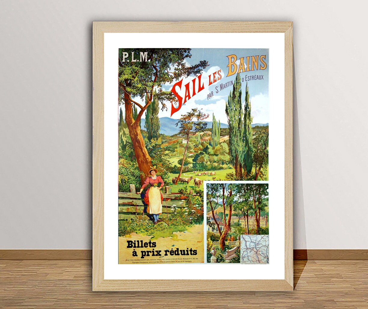 Sail Les Bains, par St Martin d'Estreaux, France VintageTravel Poster - Poster Print or Canvas Print / Gift Idea