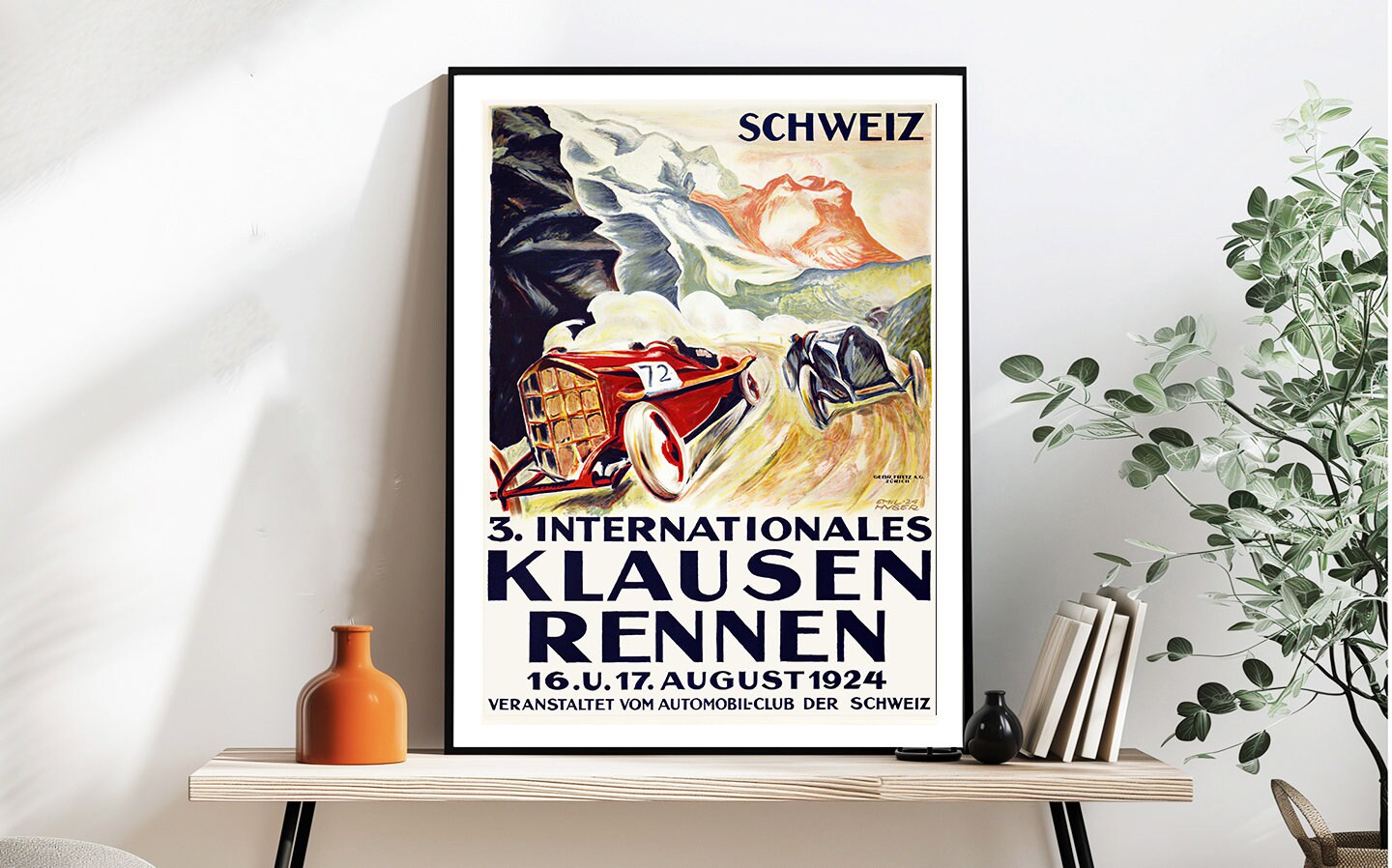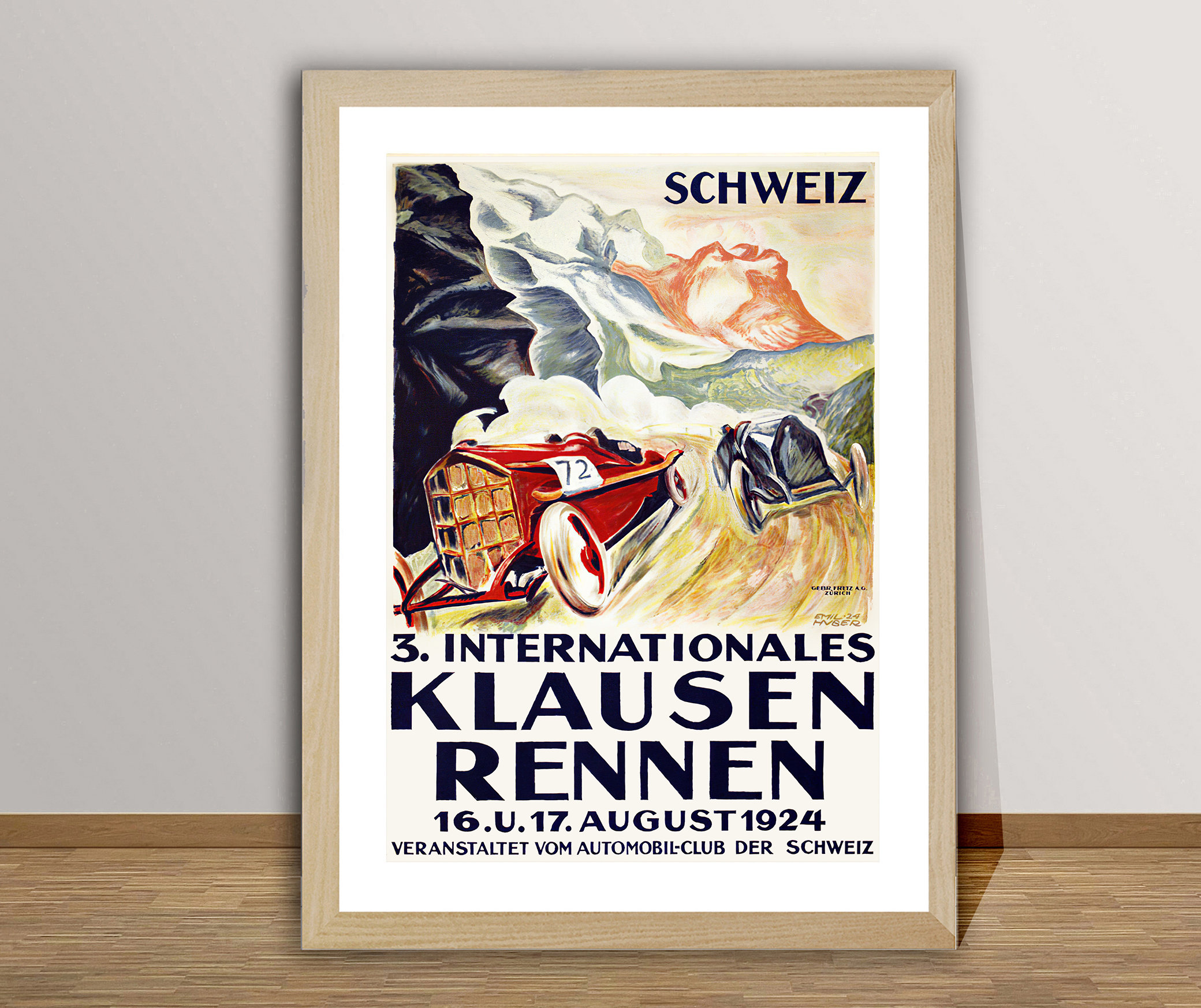 Vintage 3. Internationales Klausen-Rennen, Schweiz, 1924 Advertisement Art Print - Reproduction of a Retro Artwork, Decorative Purposes Wall Decor - Poster Paper or Canvas Print / Gift Idea