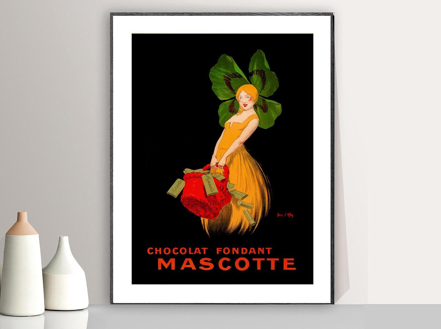 Vintage Chocolat Fondant Mascotte Advertisement Art Print - Reproduction of a Vintage Bicycle Artwork, Decorative Purposes Wall Decor - Poster Paper or Canvas Print / Gift Idea