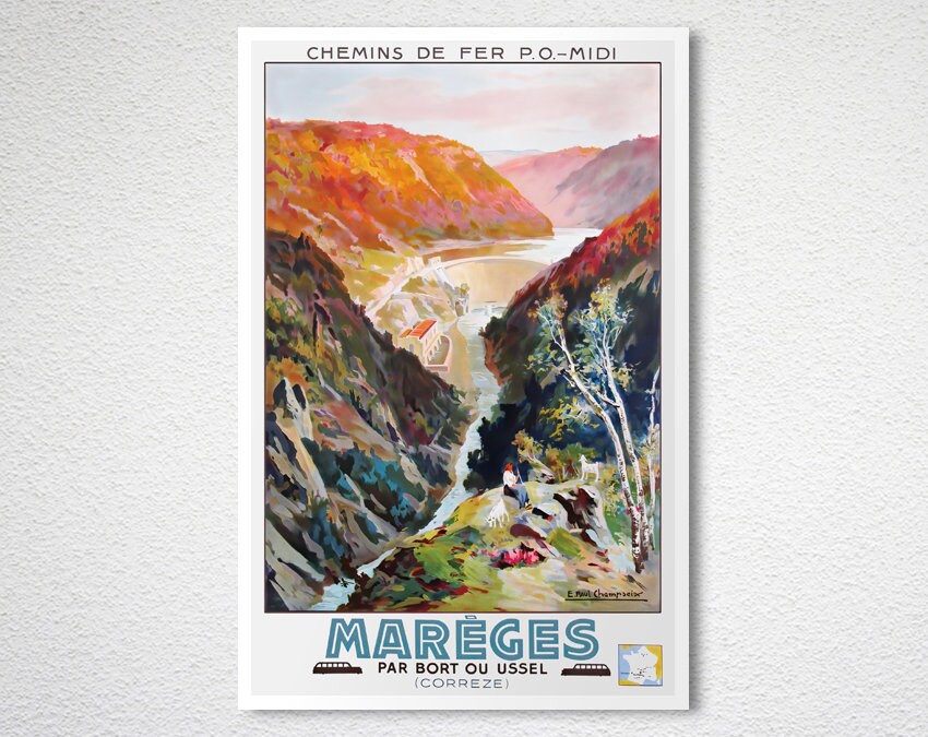 Mareges Correze France Vintage Travel Poster: Wall Decor