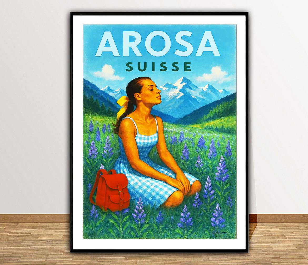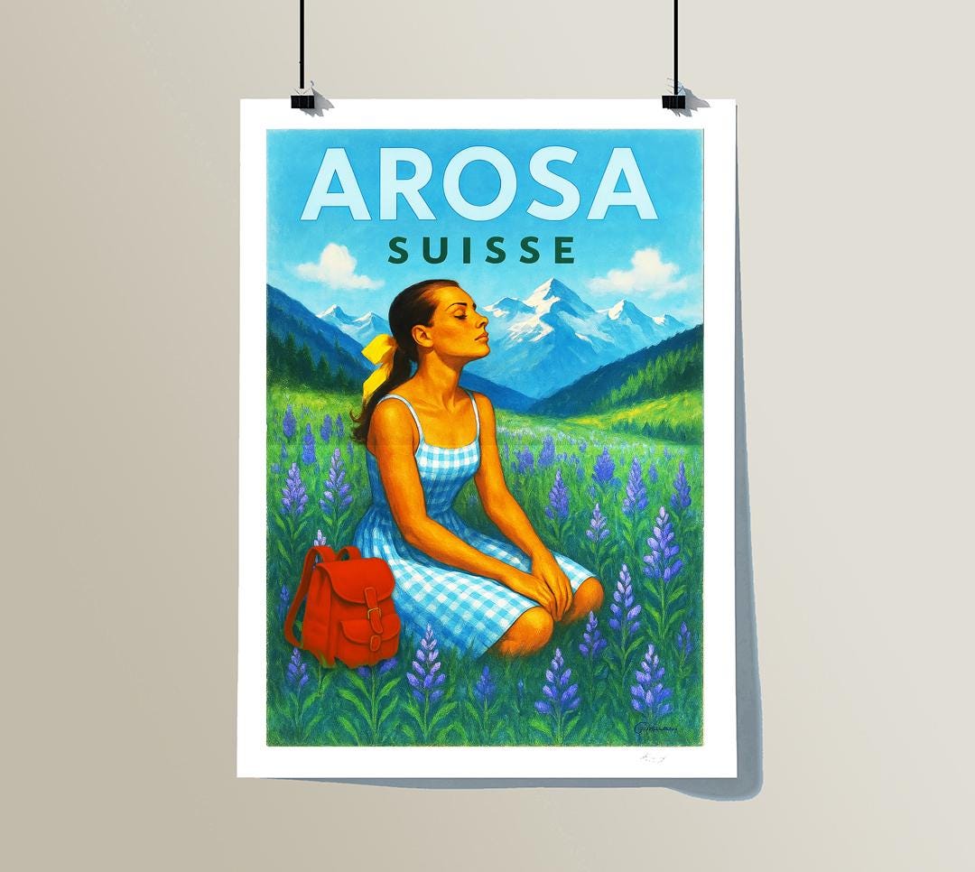 Arosa Suisse Travel Poster: Romantic Wall Art