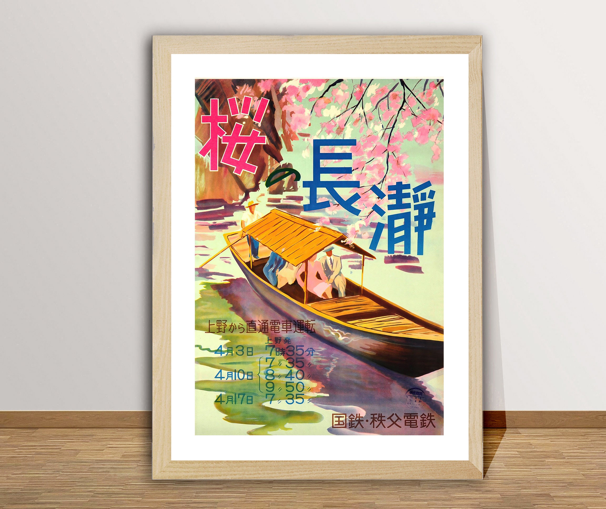 Japan River Boat Vintage Travel Poster: Giclee Print