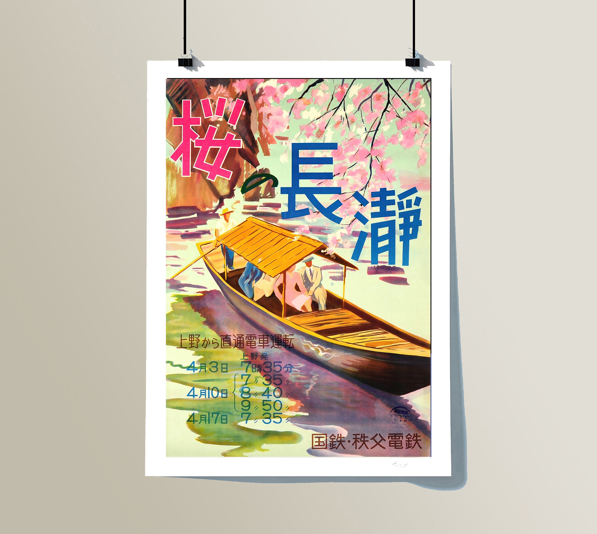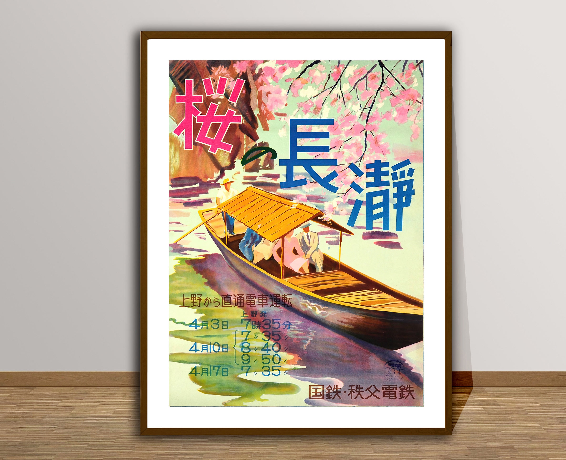 Japan River Boat Vintage Travel Poster - Poster Paper or Canvas Print / Gift Idea